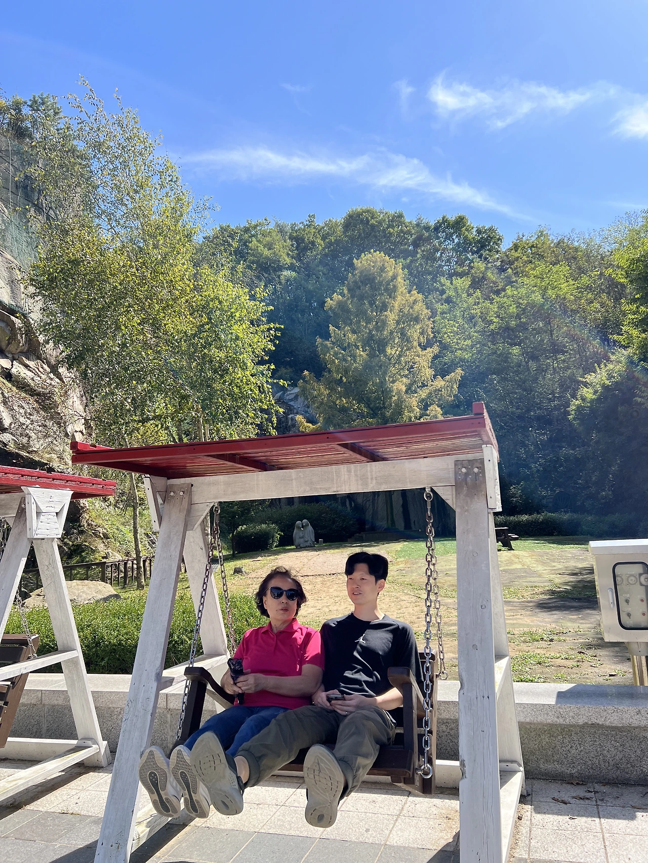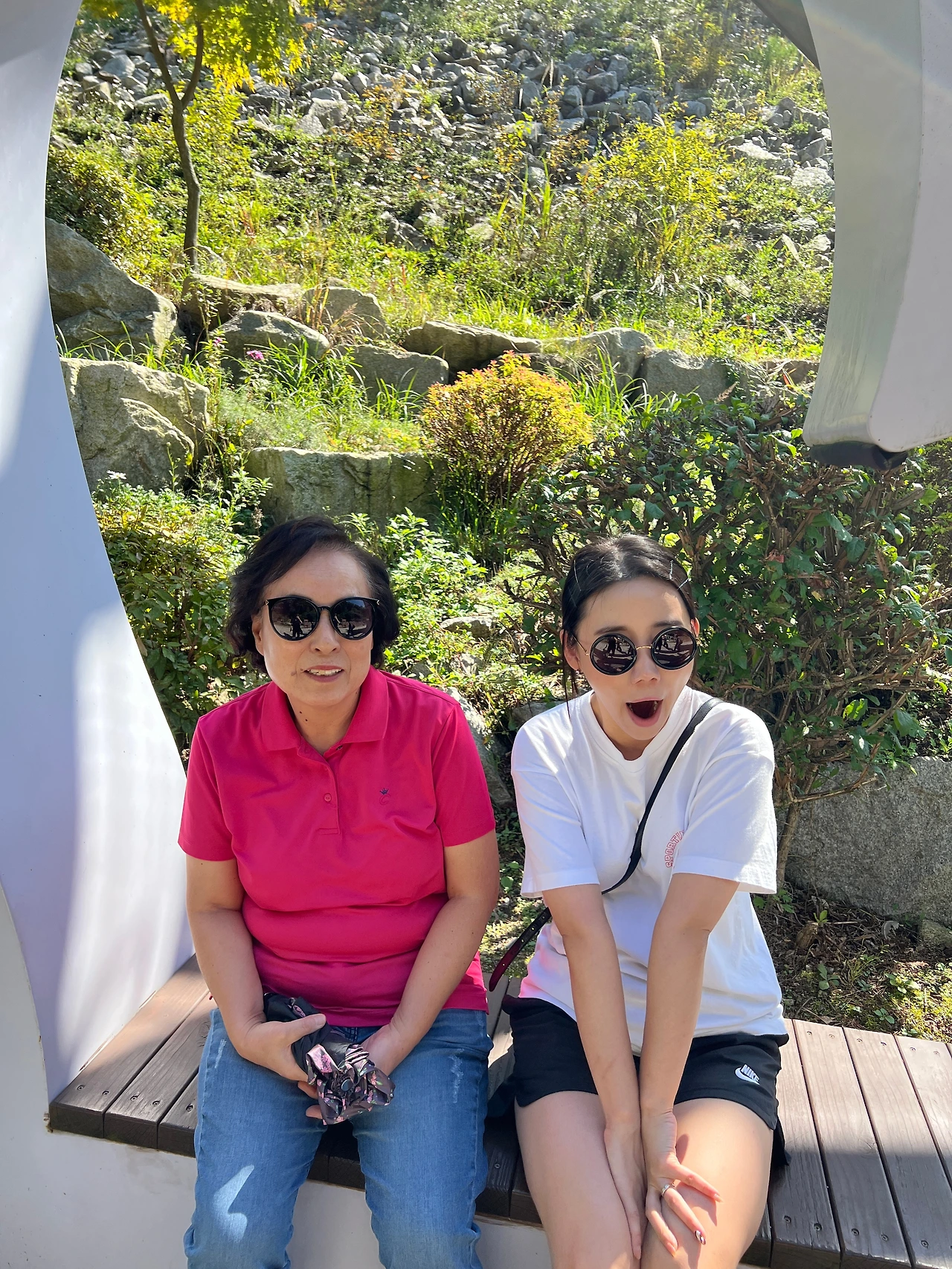 가쁜 숨을 헐떡이는 게 안쓰러우면서도, 한편으론 가슴과 어깨가 동시에 들썩이는 게 활기차게 보여 체력이 예전만 못할 뿐 그래도 아직 건강하구나 싶은 생각도 들었다. 혼자 앉아 있는 게 민망할(지도 모를) 엄마를 위해 아내가 옆에 앉고서는 내게 최대한 다정하게 보이도록 사진을 찍으라는 미션을 하달했다.(예썰! 롸저댓!) 그런데 며느리와 시엄마의 다정한 컷이라... 그동안 찍어본 사진 중 가장 어려웠다^^;;