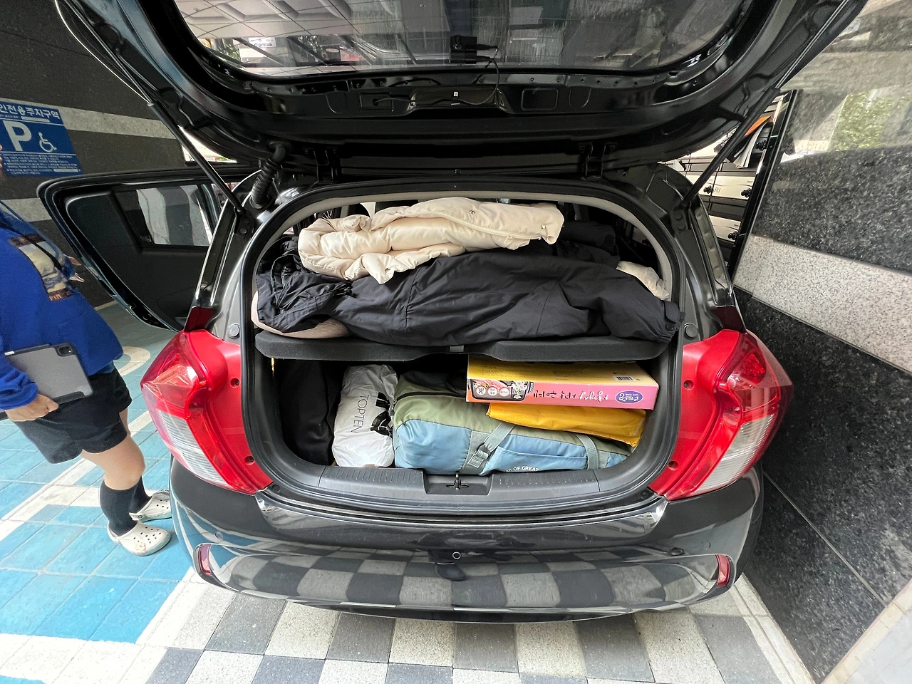 물론 내가 잘 쌓은 것도 있겠지만(^^V) 다 때려 넣고 보니 또 생각보다 짐이 별로 안 돼 보였다. 이 정도면 거의 맥시멀리스트 아닌가 싶었던 게 민망할 정도. 개인적으로는 저게 꼭 있어야 하나 싶은 것들도 몇 가지가 있긴 하나 그렇다고 어디 가서 맥시멀리스트라고 명함은 절대 못 내밀 것 같다. 아무튼 경차에 짐 싣기 성공!