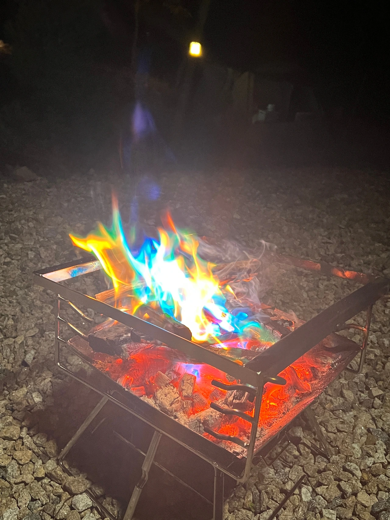 가까스로 해가 완전히 지기 전에 집 짓기를 마무리하고 3시간 늦은 애피타이저 겸 웰컴드링크를 즐겼다. 살짝 꽁~ 해 있던 아내도 문어 한 점, 막걸리 한 모금에 마음이 풀린 것 같았다. 이제야 캠핑 온 기분을 좀 내야겠다 싶어 릴랙스체어를 뒤로 젖히고 본격적으로 여유 좀 부려볼까 하는 찰나,
