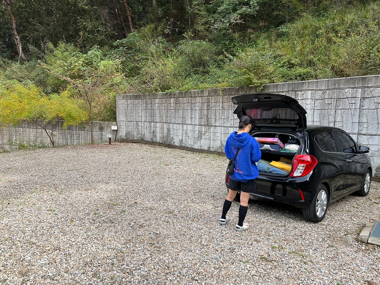 소싯적 오락실 테트리스 장인이었지만 사람 4명 타기도 답답한 경차에 이 많은 장비들을 싣고, 거기에 나와 아내의 몸뚱이까지 실을 수 있을지 확신이 서질 않았다. 띵동! 그 와중에 울리는 캠핑장 예약 확정 문자 알림. 이제는 빼박캔트. 이왕 이렇게 된 거 새로 산 장비들도 개시하고 짐들이 우리 차에 다 실리는지도 확인해 볼 겸 연습 삼아 캠핑을 가보기로 했다. 최대한 욱여넣어보고 정 다 안 들어가면 뭐, 그냥 버리고 가면 되니까. 앞문, 뒷문, 그리고 트렁크까지, 열 수 있는 차의 모든 문을 활짝 열어젖혔다.