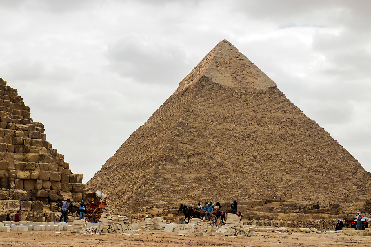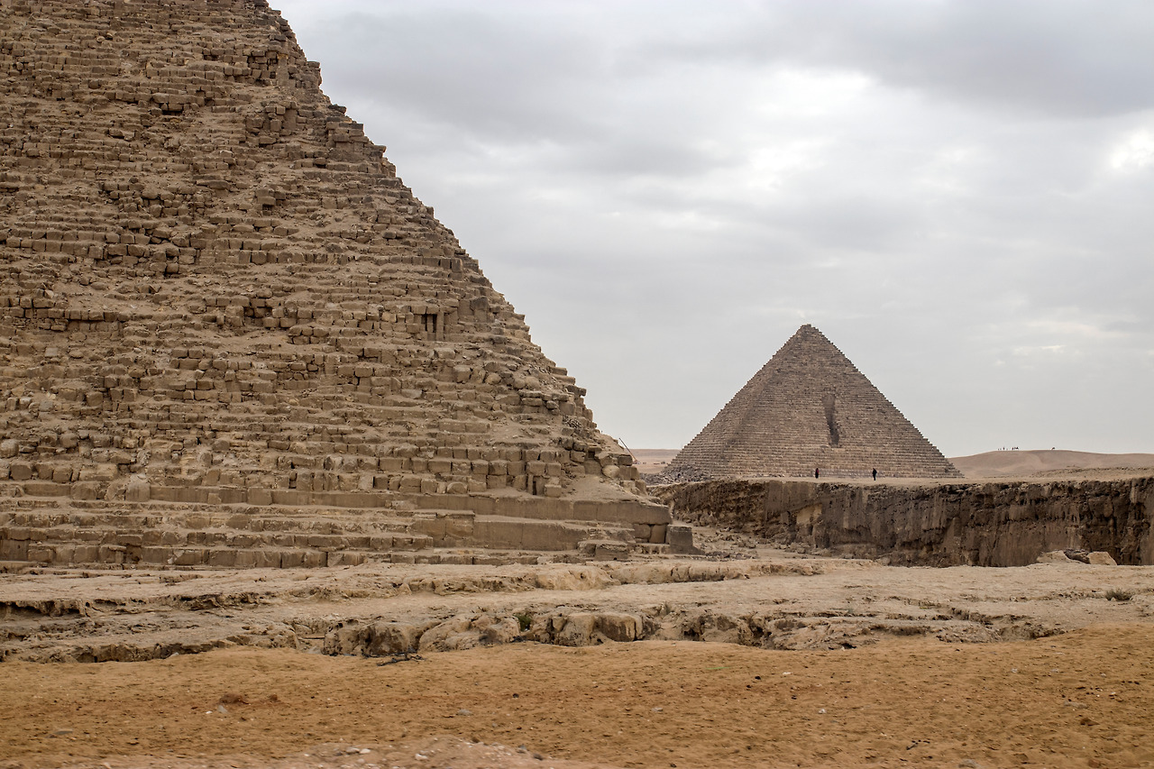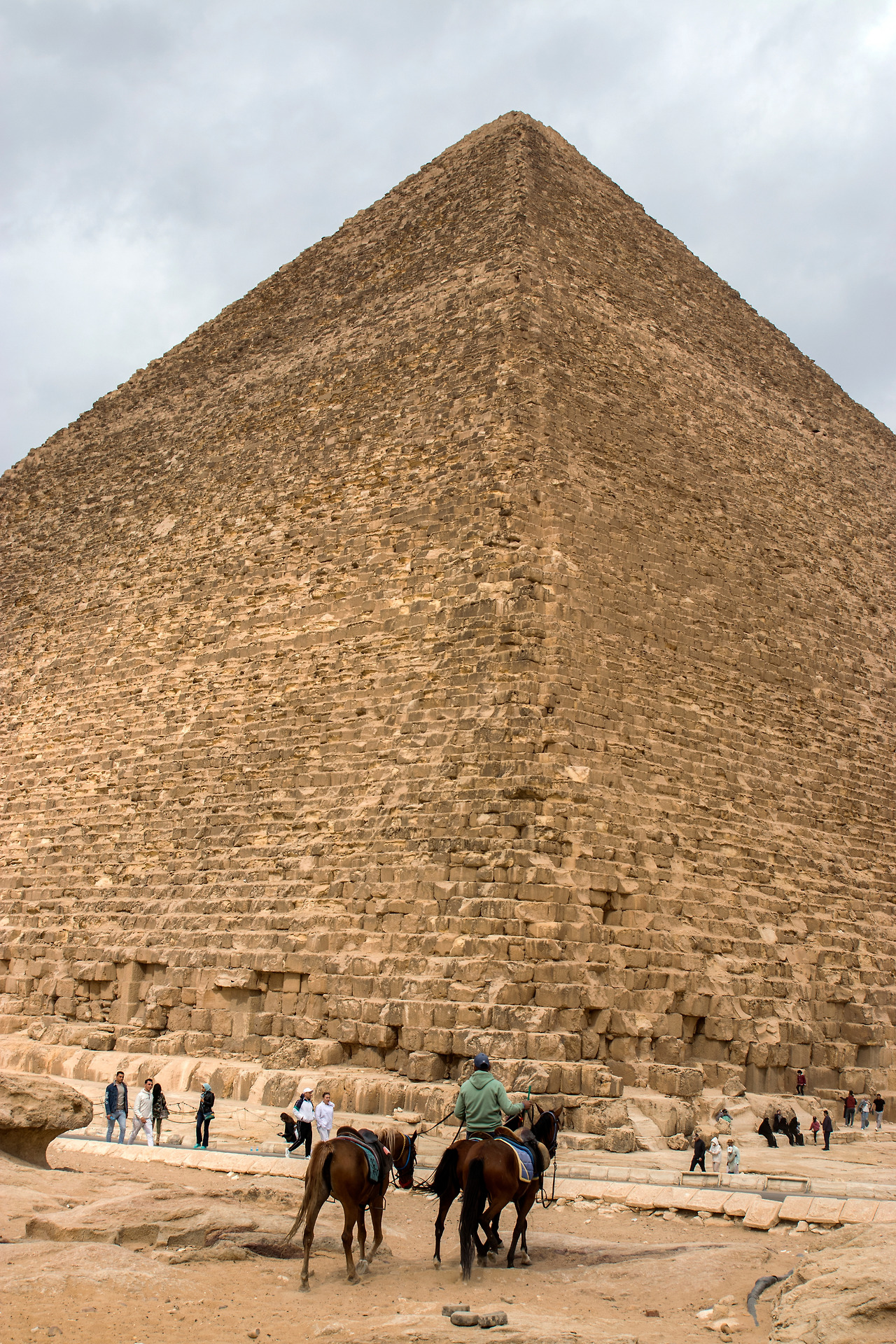 그러면 다시 파라오의 피라미드로 돌아와서, 크기가 다른 이 세 개의 피라미드는 이집트 고왕국 시대 제4왕조 때 3대에 걸쳐 고대 이집트를 통치했던 파라오들의 무덤이다. 가장 큰 것이 제4왕조 1대 파라오 쿠푸왕의 피라미드(Pyramid of Khufu), 두 번째가 쿠푸왕의 아들 카프레왕의 피라미드(Pyramid of Khafre), 마지막이 쿠푸왕의 손자이자 카프레왕의 아들인 맨카우레왕의 피라미드(Pyramid of Menkaure)다. 그중 단연 가장 거대한 쿠푸왕의 피라미드가 가히 눈길을 사로잡는다. 돌 하나의 높이가 대충 성인 키 정도인데 하나당 무게 약 2.5톤으로 230만여 개가 사용되었다. 현대 건축기술로도 쉽지 않았을 법한 일을 기원전 3000년에 해냈다 하니 괜히 세계 7대 불가사의가 아님이 실감이 난다.