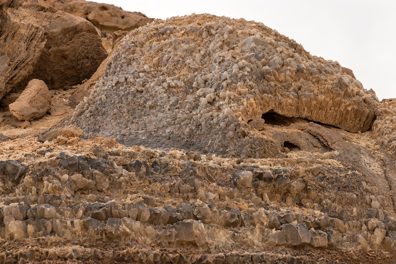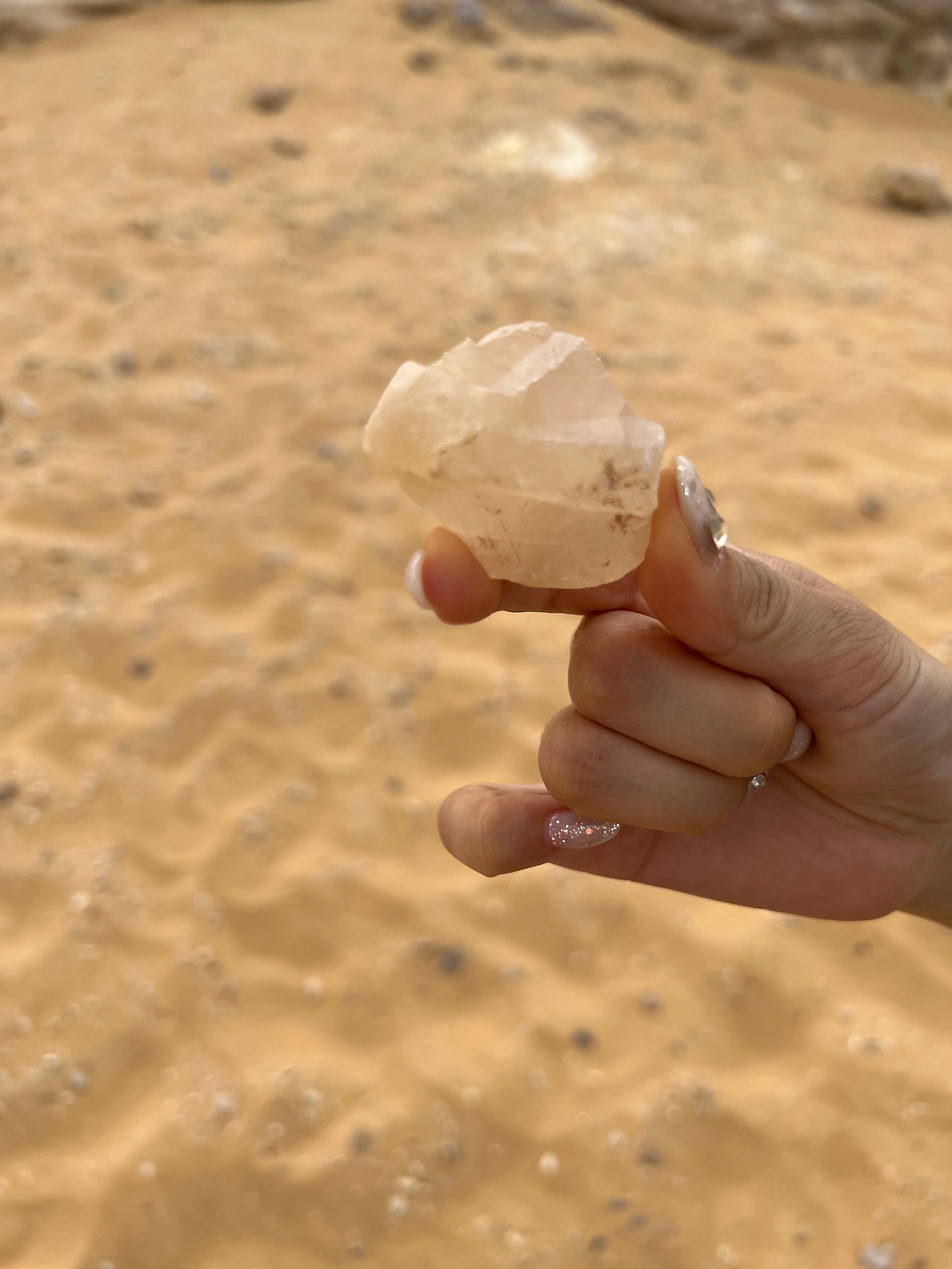 크리스탈사막 역시 화산 폭발로 인해 생긴 사막 지형이다. 유리의 주원료라 할 수 있는 이산화규소(SiO₂)가 다량 함유된 해안 규사(*규사: 해안에 있는 규소가 함유된 모래)가 화산이 폭발하면서 높은 온도로 가열되어 용융된 후 다시 냉각되어 형성된 것. 바하리야 사막이 과거 바다 혹은 바닷가였다는 흔적이자 증거다. 크리스탈사막의 크리스탈은 햇빛이 없으면 그저 삐쭉 빼죽한 모양의 날카로운 반투명 돌이지만 햇빛을 받으면 반짝거리며 존재감을 드러낸다. 아쉽게도 날씨가 흐려 빛나는 크리스탈사막의 모습은 가이드의 사진첩으로 대신해야 했다.