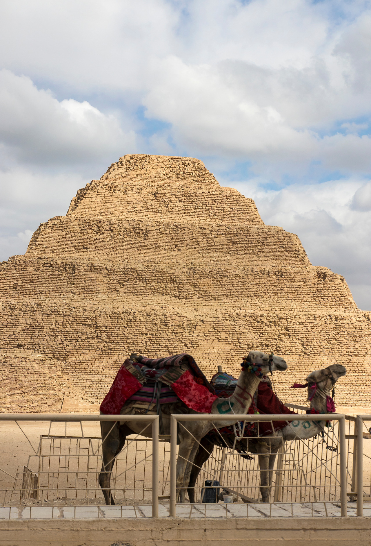 피라미드를 코앞에서 마주하게 된 건 이튿날이다. 피라미드는 그 자체만으로도 방대한 이야기보따리를 가지고 있지만 외관과 내부까지 디테일하게 파고들면 습득해야 할 지식의 양은 피라미드의 크기만큼이나 어마어마하다. 때문에 그 엄청난 양의 이야기를 가장 빠르고 정확하게, 속성으로 습득하려면 뭐니 뭐니 해도 일일투어가 제격. 마침 이집트에는 속성 과외를 좋아하는 한국인들의 성향에 맞춘 한국말이 제법 유창한 이집션 가이드들이 진행하는 일일투어가 많았다. 우리는 그중 후기가 가장 많은 가이드를 선택했다. “기자 피라미드 보기 전에 사카라 피라미드를 먼저 볼 거예요. 그래야 피라미드를 더 잘 이해할 수 있어요. 그래서 우리는 지금 사카라로 가고 있습니다.” 우리가 흔히 알고 있는 피라미드는 매끈한 정사각뿔 모양이지만 사카라 피라미드는 3단 케이크처럼 다단으로 쌓아 올린 계단식 피라미드다. 아랍어로 ‘직사각형 벤치’를 뜻하는 벽돌식 단층 무덤인 마스타바를 층층이 쌓아 만들었다. 모양은 달라도 1km 반경에서부터 존재감과 웅장함을 뽐내는 것을 보니 피라미드는 피라미드다.
