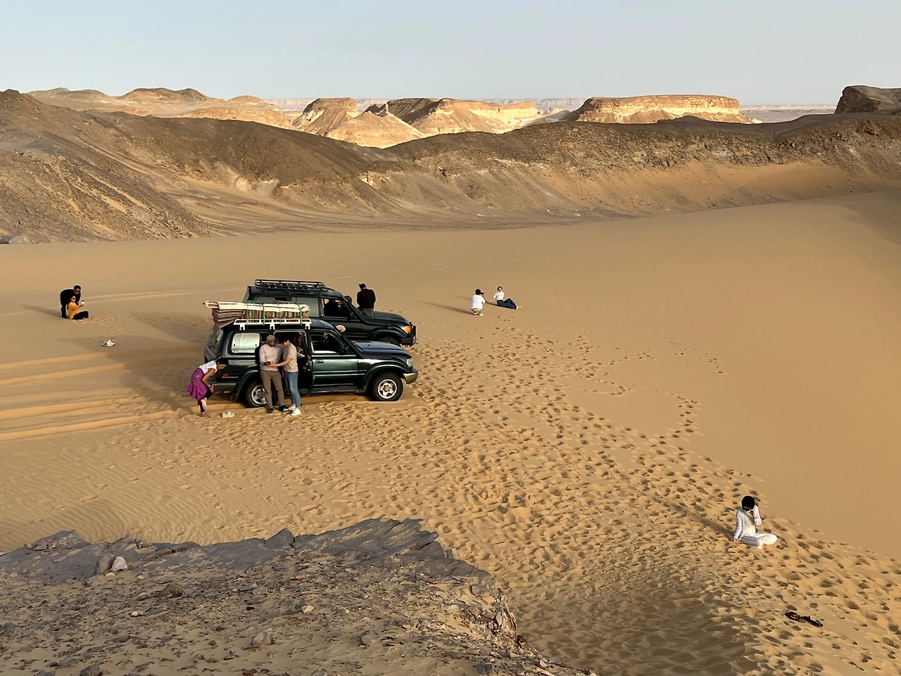 현지 이집션 가이드 투어의 장점은 뭐니 뭐니 해도 로컬에게 듣는 검증된 사실과 블로그나 검색창에서는 찾을 수 없는 유니크한 이야기들. 가이드는 먼저 ‘사하라’로 운을 떼더니 본격적으로 썰을 풀기 시작했다. “보통 한국사람들이 ‘사하라 사막‘이라고 하는데 아랍어로 사하라가 사막이에요. 그래서 ’사하라 사막’ 하면 ’사막 사막’이에요. 그냥 ‘사하라’ 혹은 ‘사막‘이라고 하면 돼요.” 이어서 바하리야 사막. 바하리야는 아랍어로 바다를 뜻한다. 즉, 바하리야 사막은 아주 먼 옛날 바다였던 곳이다. 흑사막, 크리스탈사막, 백사막 총 3개의 사막이 있는데 1박 2일 동안 3개의 사막을 모두 체험할 예정. 각 사막에서의 지형적 특색을 살린 인증숏 촬영과 액티비티도 준비되어 있단다. 태어나 처음 가보는 사막에 내심 쫄아 있었는데 두려움보다 기대가 커졌다.