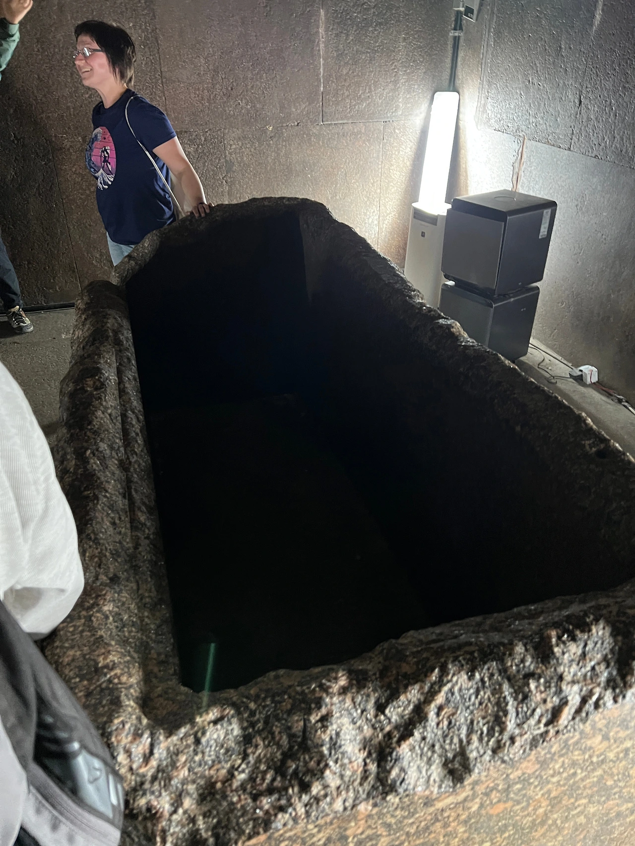 계단 지옥의 끝에는 내부 관람의 목적지인 쿠푸왕의 석관이 있는 방이 나온다. 정말 달랑 석관만 있다. 이유인즉슨, 쿠푸왕의 피라미드 발견 당시 이미 도굴꾼들에게 털린 상태였다고. 예상치 못한 결말에 수박 겉핥기에 대한 후회보다 티켓값이 더 아깝다는 생각이 뇌리를 잠시 스치긴 했으나 이때 아니면 언제 들어와 보겠는가? 비록 쿠푸왕의 미라는 없지만 파라오의 기운은 충분히 받고 간다며 정신승리로 기자의 대피라미드 투어 마무으리.