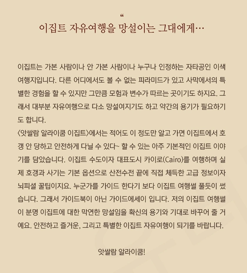 여행썰 풀 듯 알려주는 이집트 자유여행 가이드에세이.