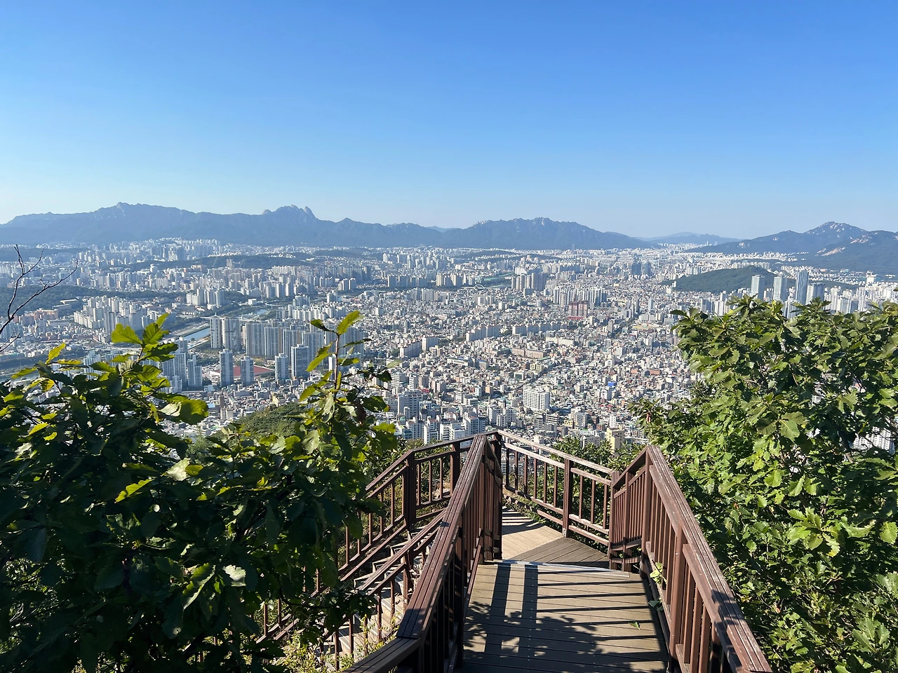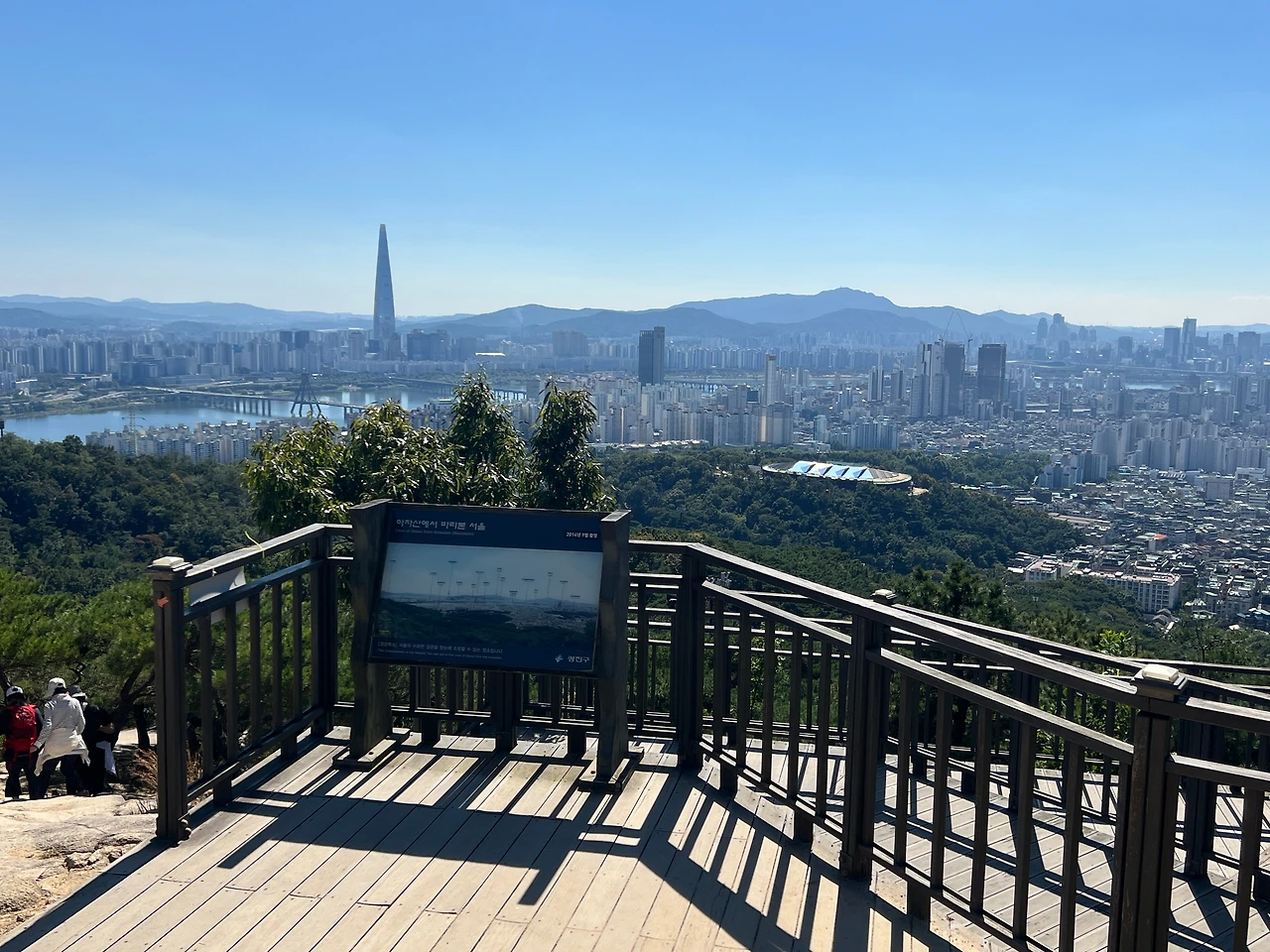 한눈에 서울구경을 할 수 있는 곳이라 하면 단연 잠실 L타워, N서울타워, 63빌딩과 같은 서울의 랜드마크가 먼저 떠오르겠지만 이처럼 인간이 쌓아 올린 높은 곳이 아닌 자연이 만든 높은 곳이 있다. 바로 서울에 있는 모든 산들. 그중 서울구경하기에 최적화된 산은 아차산과 용마산이다. 최고높이 각각 295.7m, 348m. 너무 높으면 멀리 볼 수 있겠지만 자세히는 보이지 않을 테고, 너무 낮으면 자세히 보이나 멀리까지 볼 수 없을 텐데 아차산과 용마산은 아주 높지도 낮지도 않아 정상 혹은 등산 중 뒤돌아 내려다봤을 때 서울 전체가 거의 다 보일 만큼 멀리 보이면서도 자세하게 볼 수 있는 높이다. 한마디로 시티뷰 감상하기에 딱 적당한 높이. 날씨만 좋으면 서울의 랜드마크들을 모두 카메라에 담을 수 있다. 아차산을 오르면서는 서울의 동쪽(강동, 구리 일대)과 남쪽(하남 일대)을, 용마산으로 내려오면서는 서울 북쪽(강북 일대)과 서쪽(여의도, 강서 일대)을 구경했다. 분명 등산을 했는데 핸드폰 사진앨범은 자연보다 서울 시티뷰로 가득 찼다.