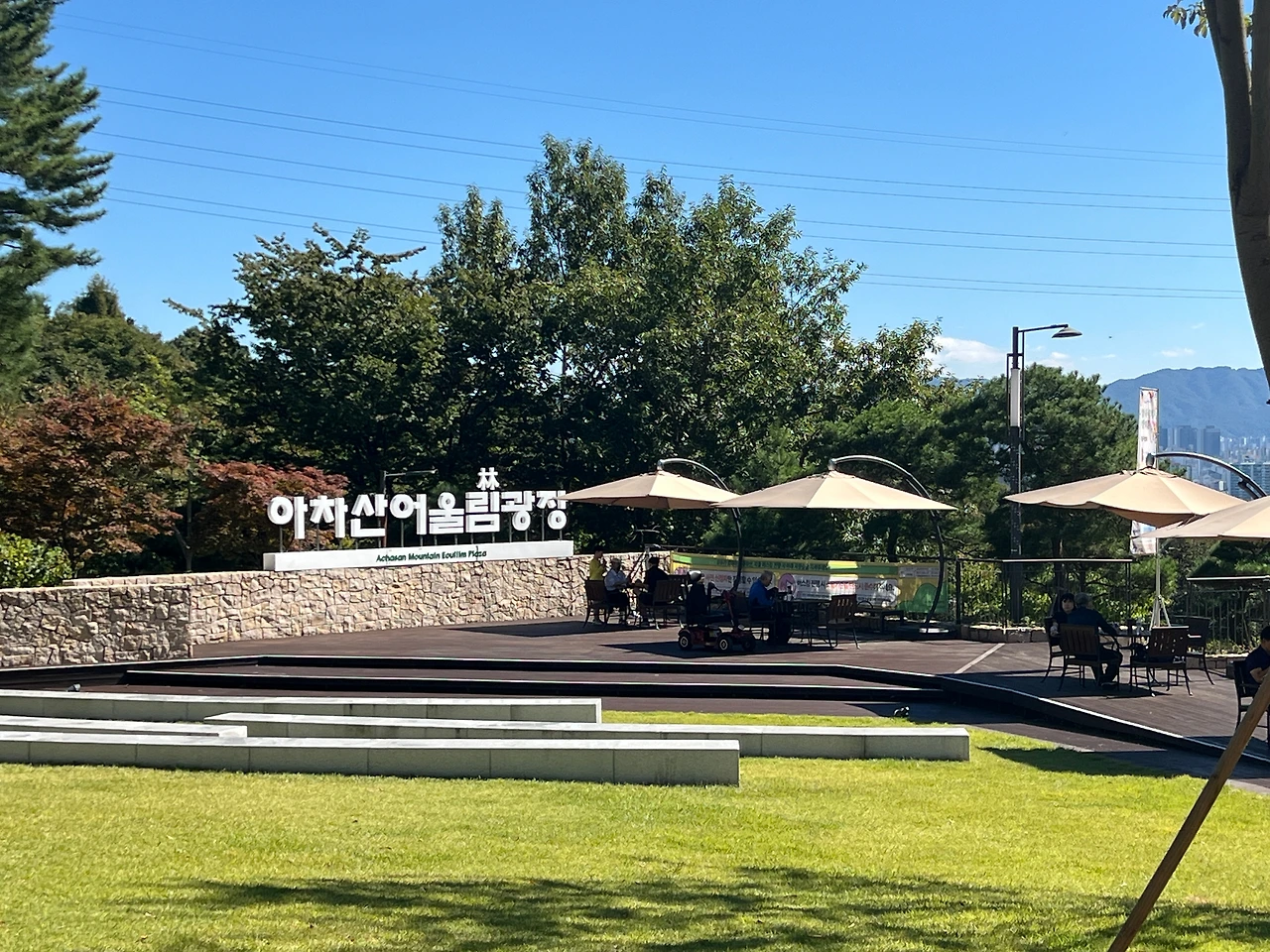 ★아차산역 | 2번 출구에서 영화사 방면으로 주택가를 관통해 가면 도보로 25분(1.3km) 아차산어울림광장에 도착