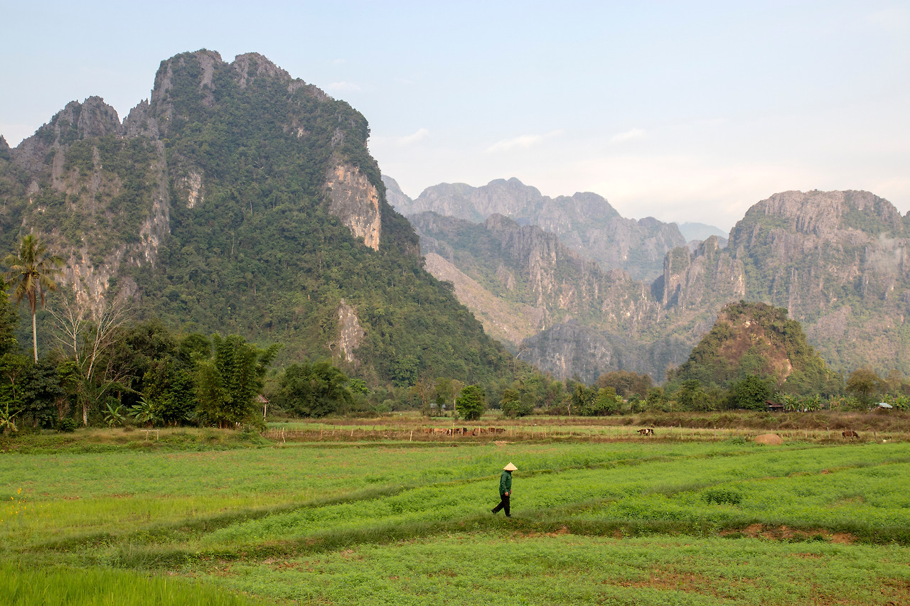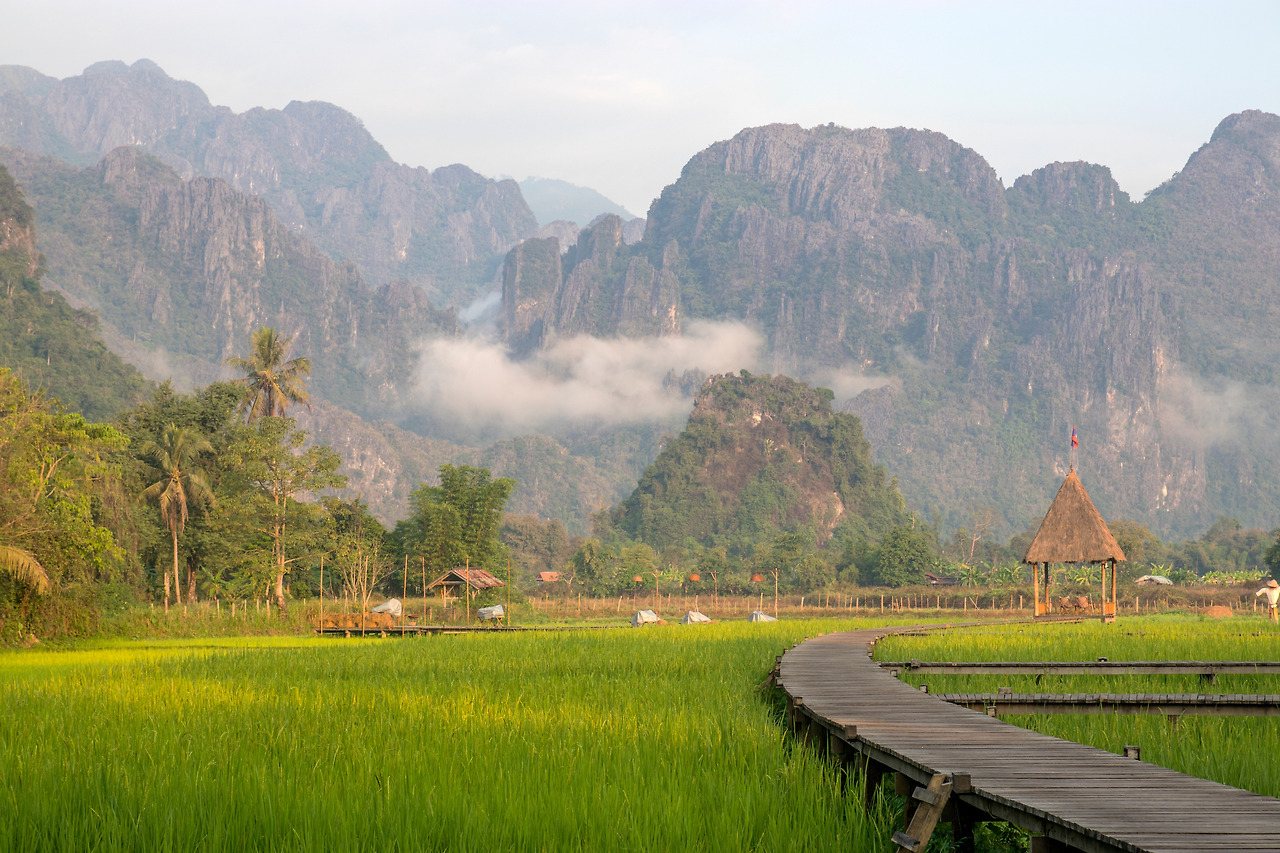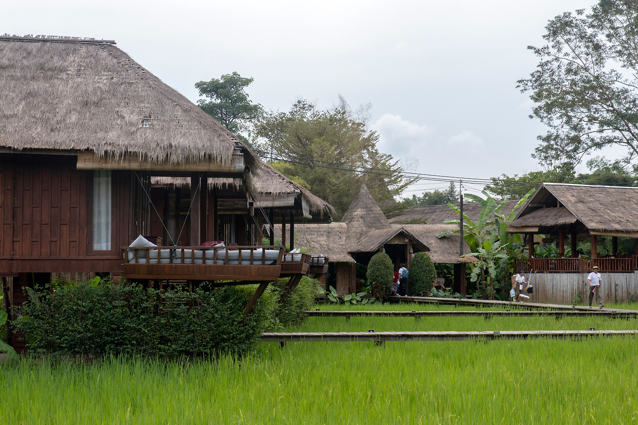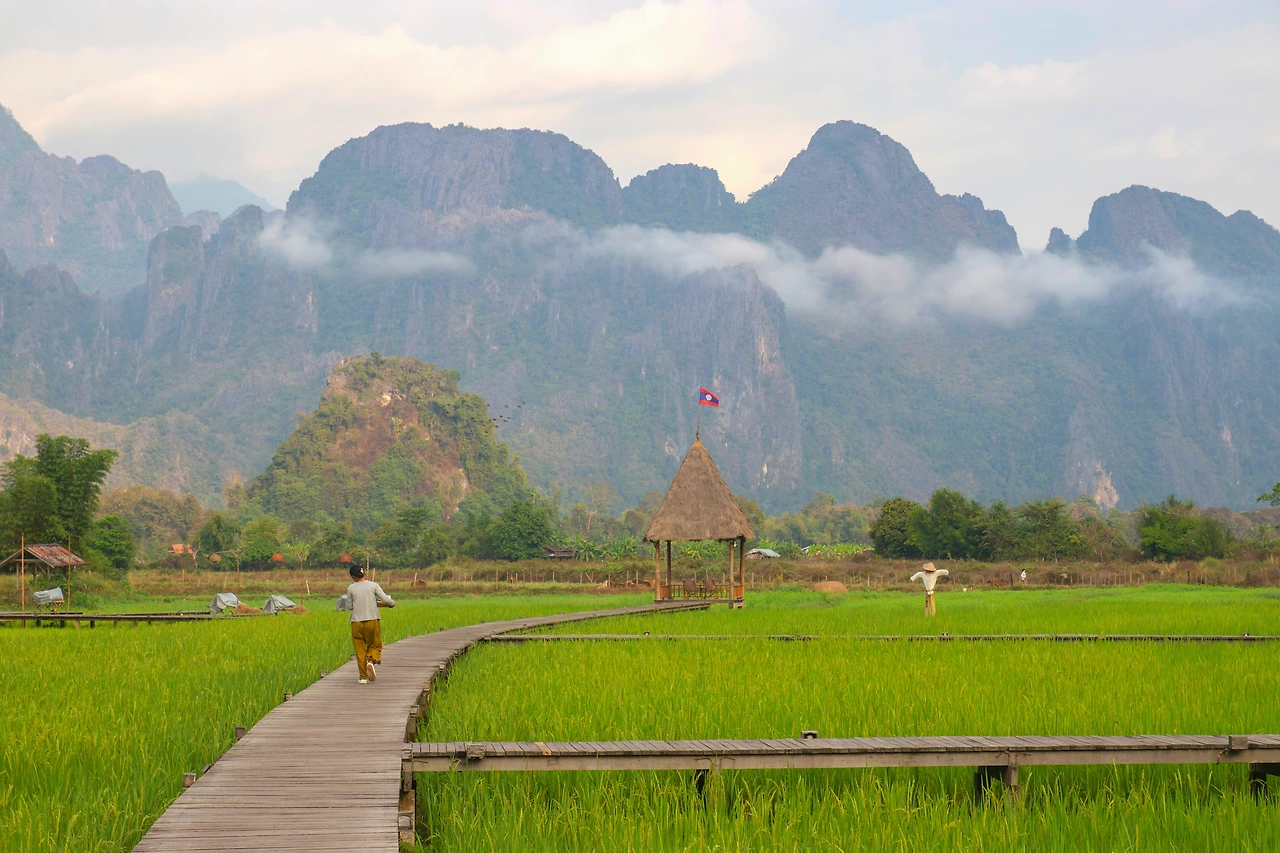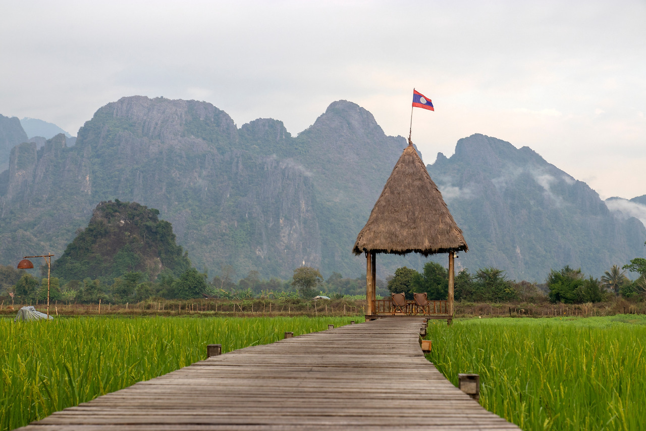 이미 사진과 영상으로 몇 번을 보고 왔지만 역시나 오감으로 직관하는 감동은 차원이 달랐다. 사진과 영상으로 아무리 잘 찍어도 담을 수 없는 비엥타라 방비엥 리조트 특유의 바이브가 느껴졌다. 뭐 엄청나게 웅장한 대자연이 펼쳐져 있다거나, 방비엥이 아니면 볼 수 없는 유니크한 어떤 자연현상이 있다거나, 지구가 아닌 것 같은 비현실적인 풍경이 있는 것은 아니었다. 그저 저 푸른 초원 위에 그림 같은 오두막하나 지어져 있고 그 뒤로 어림잡아 대충 인왕산 높이 정도 되어 보이는, 그래서 정선의 인왕제색도가 떠오르는 산이 있을 뿐이었다. 각각의 풍경 하나하나는 우리나라 여느 시골에서도 흔히 마주칠 수 있는 모습들이었지만 이 단순한 조합이 대체 뭐라고 가슴이 탁 트이는 동시에 가슴을 무언가에 퉁! 얻어맞은 듯한(이런 걸 벅차다고 하는 걸까?) 기분이 들었다. 보는 내내 할 말을 잃고 입만 헤~ 벌린 채 카메라에 담기 바빴다. 숙소를 고를 때 1순위로 보는 게 뷰인 뷰친놈(뷰에 미친놈)으로서 나름 국내외 뷰맛집 숙소들을 제법 찾아다녔지만 이런 뷰는 처음이었다. 한동안 절대 변하지 않을 줄 알았던, 신혼여행으로 다녀왔던 이집트 후루가다의 홍해 오션뷰 인생숙소가 단번에 갱신돼버렸다. 홍해바다쯤이야 뭐... 바다는 다른 데서도 볼 수 있는 곳이 많지만 이런 촌뷰는 오직 라오스 방비엥, 방비엥에서도 비엥타라 방비엥 리조트가 아니면 아마도 볼 수가 없을 테니까.