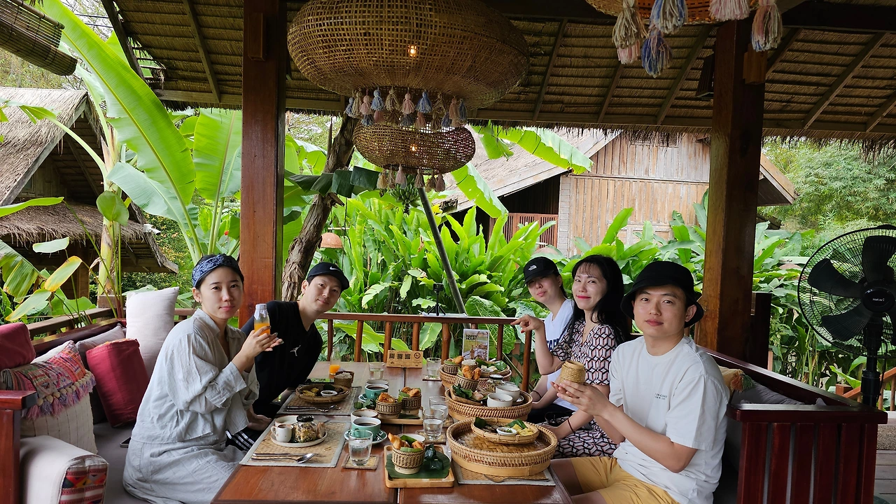 방비엥 숙소인 비엥타라 방비엥 리조트를 예약하면서 나름의 우여곡절이 있었다. 우리에겐 총 3개의 방이 필요한데 방 개수가 모자라 눈치게임을 해야 했고, 눈치를 잘 살핀 덕분에 예약에 성공할... 뻔했으나 날짜를 착각하는 바람에 취소했다가 다음 날 다시 예약했더랬다. 그래도 (사서) 고생한 끝에 주니어 빌라 스위트 하나, 슈페리어 룸 두 개를 쟁취했다. 그중 리얼 방갈로 형태의 숙소는 주니어 빌라 스위트 하나였다. 너무너무 감사하게도 결혼한 지 아직 1년이 채 안 된(그러나 만난 지는 10년이 넘은) 신혼쀼를 배려해 멤버들은 아내와 나에게 주니어 빌라 스위트를 양보했다. 우리의 훈훈함에 감동을 받았는지 운 좋게도 체크인할 때 슈페리어 룸 하나를 디럭스 빌라로 업그레이드해주었다.(실은 현지 결제로 하다 보니 예약가보다 높아서 그렇게 해준 것 같다는 뇌피셜) 오~ 럭키비키! 얻어걸린 디럭스 빌라는 배슨생의 하해와 같은 성은에 힘입어 니나킴과 JYP가 쓰게 됐다. 배슨생은 자동적으로 슈페리어 룸을 독차지했다. 화목하게 방 배정이 끝나고 짐을 풀기 위해 우린 각자의 방으로 흩어졌다.