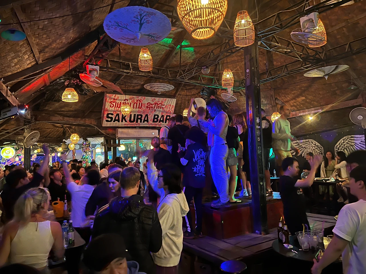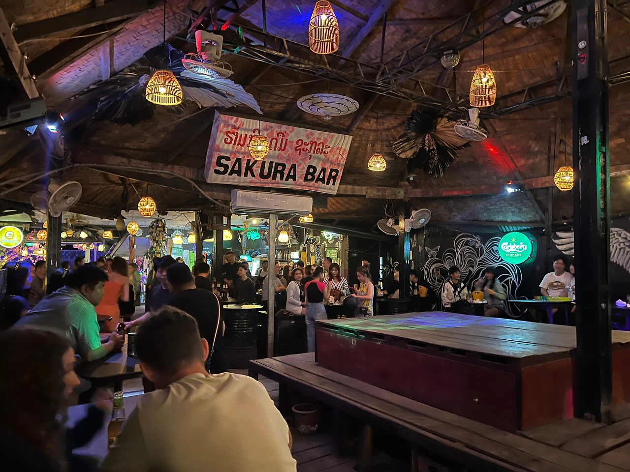 드디어 기다리고 기다리던 시간이 왔다. 방비엥의 성지와도 같은 사쿠라바에 갈 시간. 사쿠라바는 블루라군과 함께 방비엥에서 다른 건 다 포기하더라도 이것만은 절대 포기할 수 없는 두 가지중 하나였다. 때문에 무조건 가긴 갈 건데 언제 갈지를 두고 고민을 하다가 우린 첫날로 정했다. 아무래도 지구에서 흥 꽤나 넘친다는 젊디 젊은 청춘들이 다 모이는 곳이다 보니 상대적으로 마냥 젊지만은 않은 평균나이 35.8살의 우리 다섯 청춘들은 상당히 기가 빨릴 것으로 예상되기에, 그나마 흥과 에너지가 넘치는 여행 초반에 가줘야 사쿠라바에서 살아서 나올 수 있을 것 같았다.