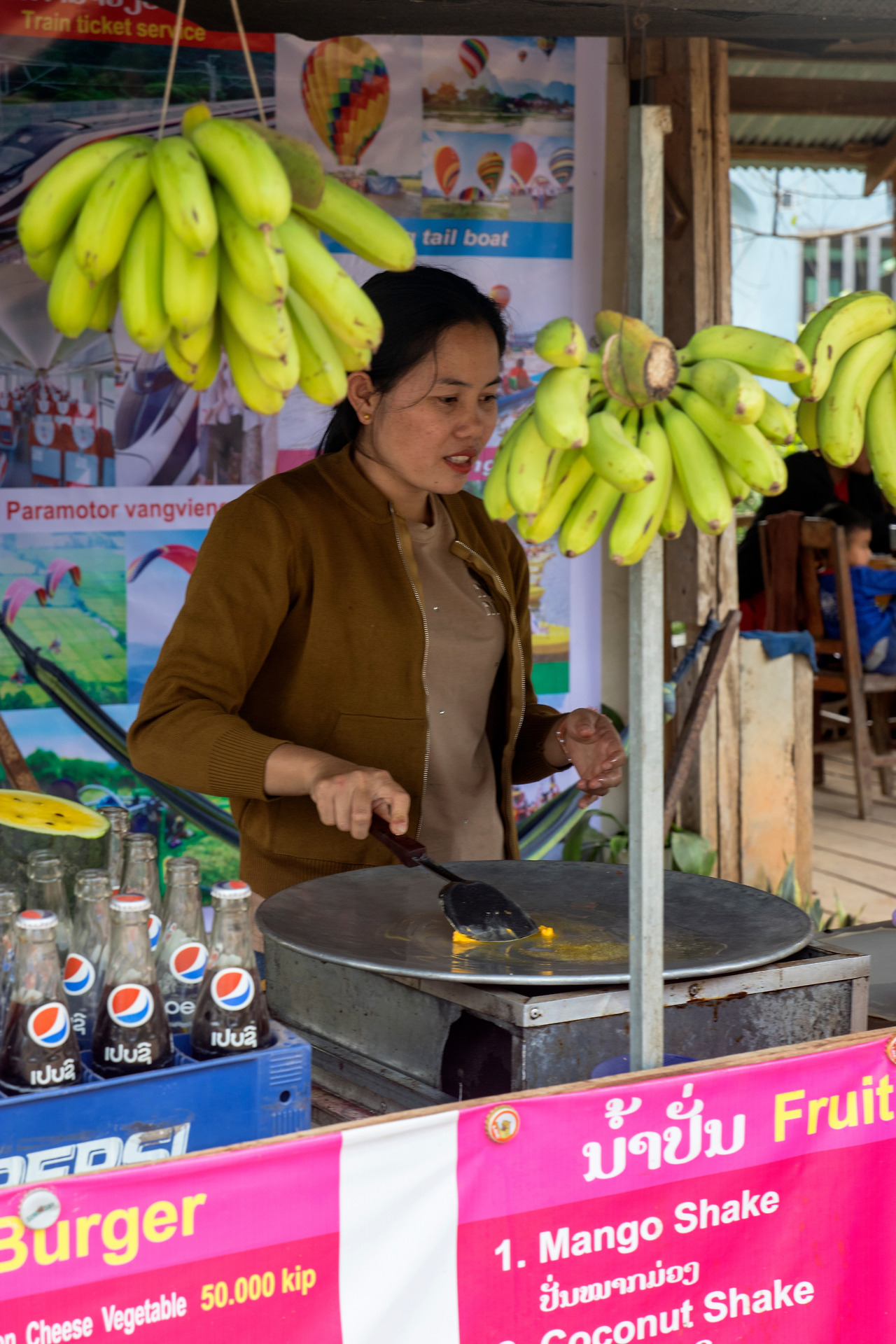 일단 프라이빗밴 기사님께는 '잠시'라고 양해를 구해놓은 상태이기는 했는데 시간이 돈인 일이라는 걸 너무도 잘 알고 있기에 차마 '20분만 더'라고 양해를 구하기가 미안했다. 더구나 가격도 흥정할 대로 다 했기에 더 그랬다. 그냥 우리가 남은 샌드위치를 포기하던지, 아니면 샌드위치 가게 이모님을 닦달하던지 둘 중 하나였다. 그래도 방비엥에서의 마지막 만찬인데 포기할 수는 없어 기사님께는 미안하지만 후자를 택했다.