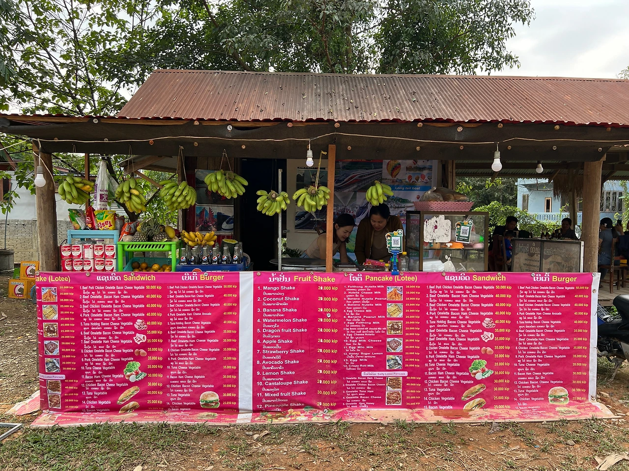 이미 메뉴는 정해져 있었지만 예의상(?) 메뉴판 구경을 먼저 했다. 시작부터 다소 실망스러웠다. 메뉴야 뭐 거기나 여기나 베이스가 바게트 빵이고 속재료 조합의 차이라 약간 달라도 거기서 거기였는데, 가격은 거기와 여기였기 때문. 호텔 바로 근처라 지역 프리미엄이 붙은 걸까?(곱게 표현했지만 일명 바가지) 물론 우리나라 돈으로는 큰 금액은 아니었으나 4일간 라오스 패치가 되다 보니 5,000킵 더 붙는 게 왠지 5,000원 더 붙은 것 같은 기분이 들었다.(대략 340원 차이...^^;;) 뭐 맛이 다를 수도 있는 거니까, 부디 340원만큼의 맛 차이가 있기를 기대하며 주문을 마쳤다.