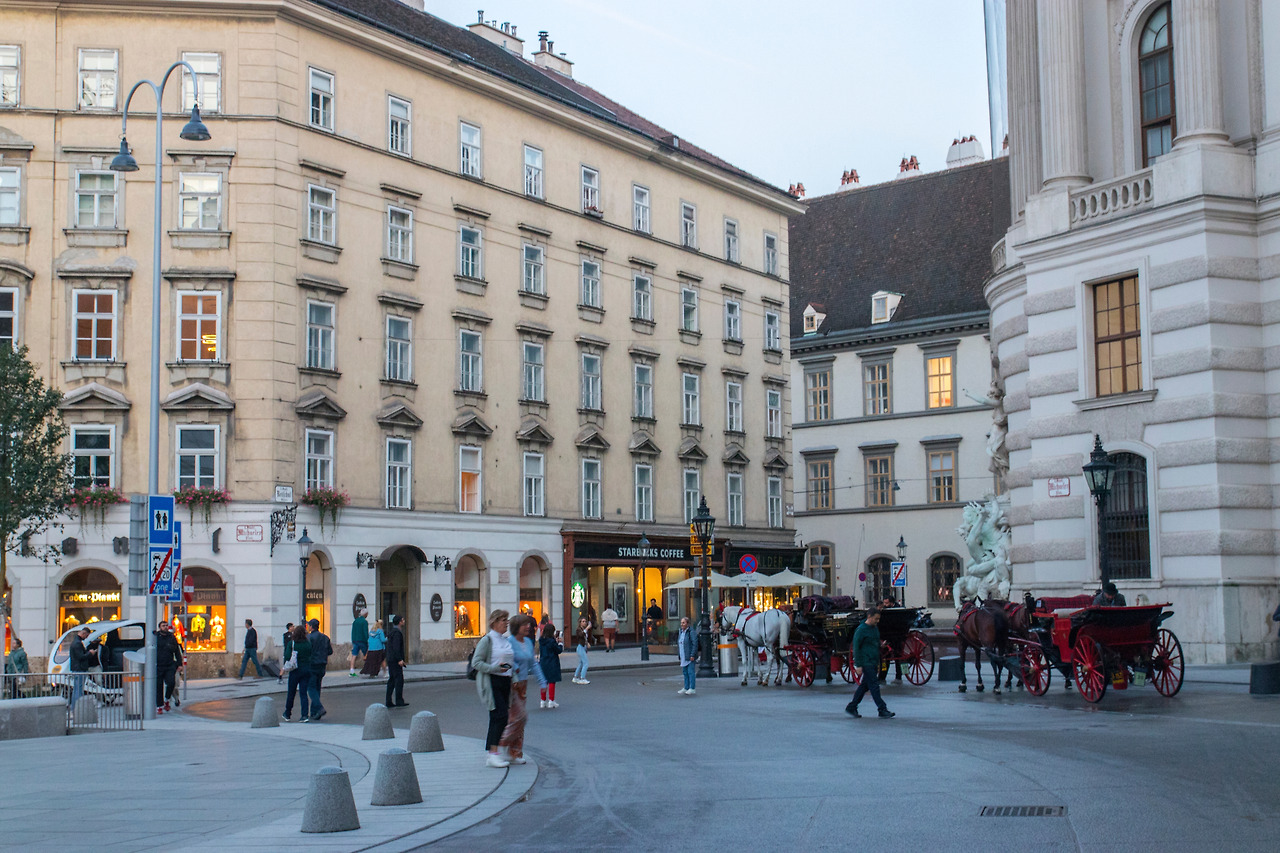 명품가 콜마르트 거리를 걸다가 말똥 냄새가 점점 짙어져 온다면 곧 미하엘 광장에 도착한다는 의미다. 관광용 마차들이 대기장소로 애용하는 장소이다 보니 말똥 냄새가 진동을 한다. 하지만 말똥 냄새가 신경 쓰여 그냥 스쳐가기엔 아쉬운 곳. 광장 한복판 로마 유적을 중심으로 모차르트의 미완성 유작인 ‘레퀴엠’ 일부가 처음 연주된 ‘성 미하엘 교회(Pfarre St. Michael)와 완공 당시 최악의 건축으로 평가받았던 '로스하우스(Looshaus)'가 있고, 무엇보다 호프부르크 왕궁으로 통하는 미하엘 문 양옆에 있는 4개의 헤라클레스 상이 인상적이다.