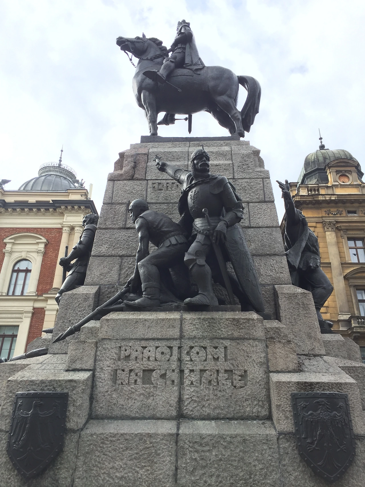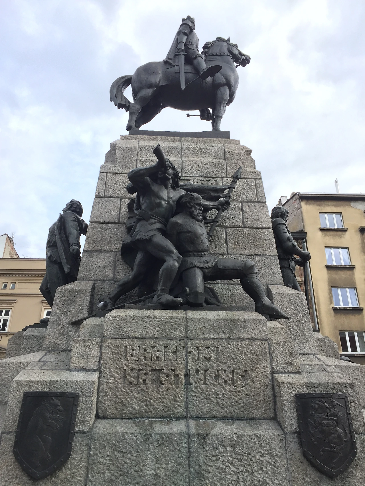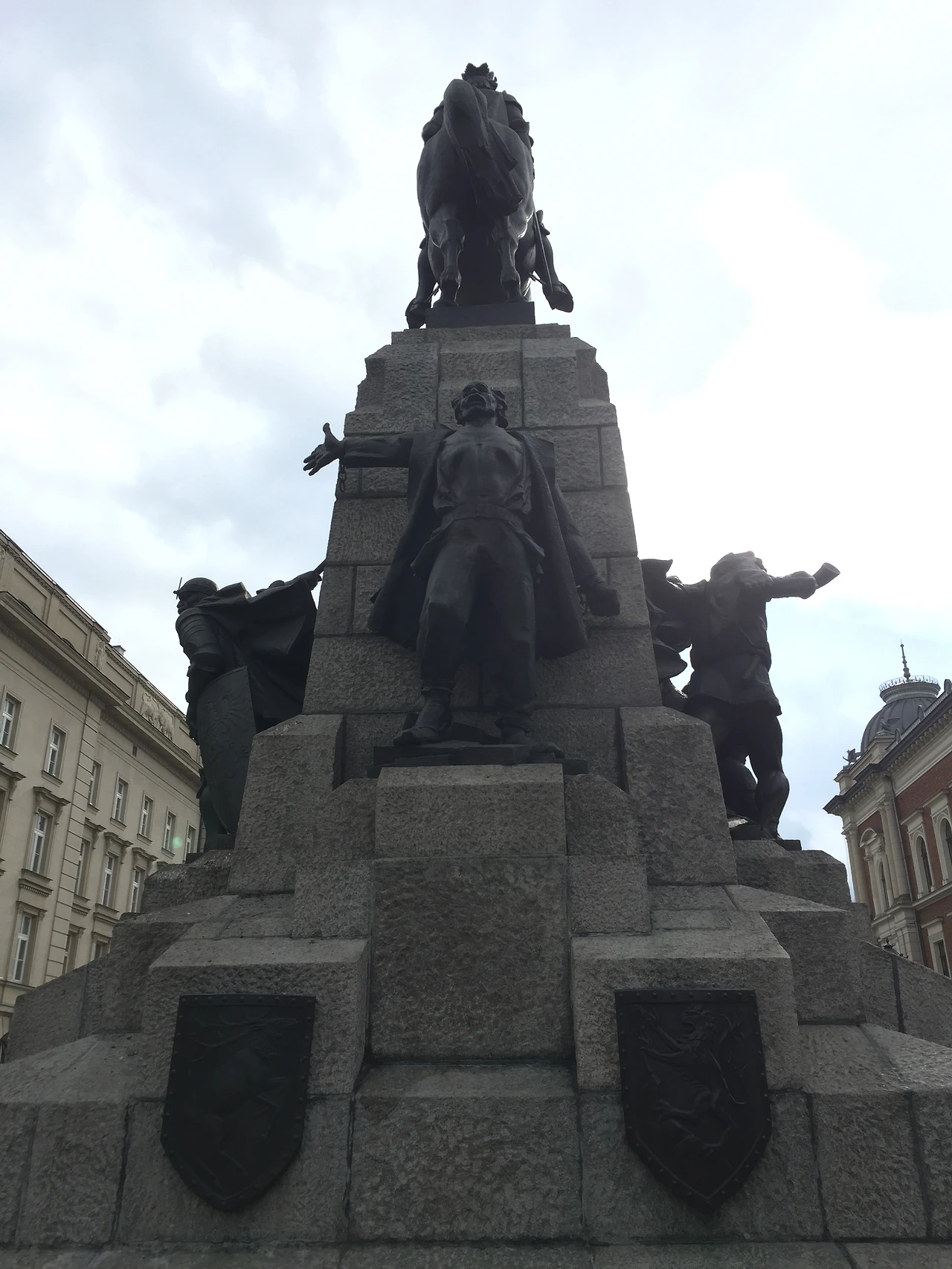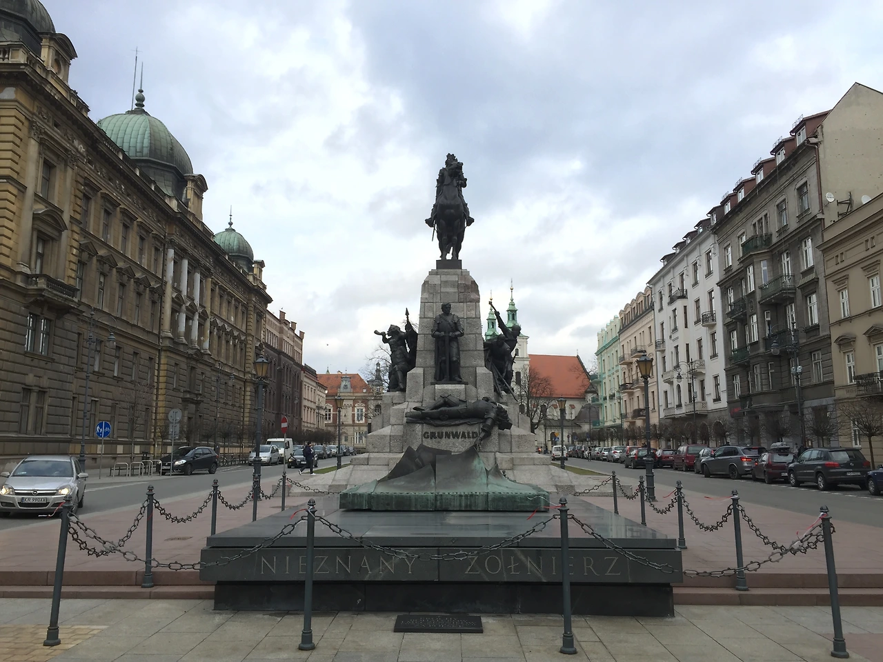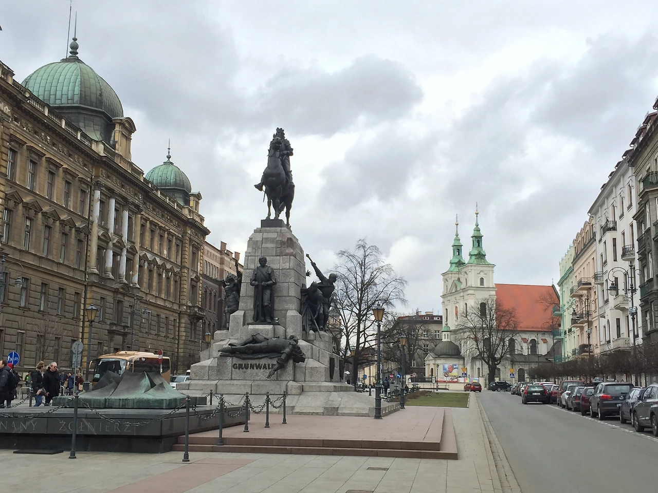 구시가지 입구에는 구시가지로 통하는 플로리안스카 문(Florianska Gate)이 있다. 그리고 바로 앞에는 바르비칸(Kraków Barbican)이라는 과거 크라쿠프를 방어하기 위한 목적으로 세워진 요새가 있다. 요새를 둘러본 다음 문을 지나 구시가지로 들어가 보면 되겠다 싶었는데 바르비칸 뒤로 조그만 광장이 나의 레이더 망에 들어왔다. 중앙에 제법 큰 동상도 있다. 유럽광장에는 항상 동상이 있기 마련이다. 광장 불변의 법칙이랄까? 구시가지를 빨리 가보고 싶은 마음도 있었지만 맛있는 반찬은 아껴두었다 맨 나중에 먹듯, 이 설렘을 더 오래 간직하고 싶기도 했다. 그래서 난 우연히 눈에 들어온 그 작은 광장으로 먼저 발걸음을 옮겼다.