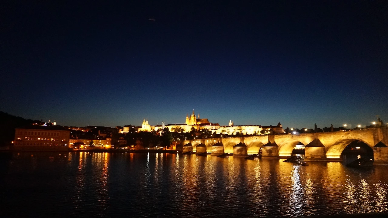 성비타성당에서 내려오는 길에 황금소로를 둘러보는데 예쁘고 아기자기한 가게들이 많아(프란츠 카프카의 집도 있습니다!) 친구들을 위한 기념품을 하나씩 사들고 전망이 좋은 카페에 앉아 프라하의 적갈색의 지붕들을 한참이나 내려다봤습니다. 체코 사람들은 본인들이 얼마나 예쁜 집에서 살고 있는지 알고 있을까 궁금해하며. 혹은 나도 태어날 때부터 이미 익숙한 것들이라 그것들이 얼마나 좋은 건지 알지 못하는 건 아닐까 경계하기도 하며. 태양이 너무 뜨거워 숙소에 들어가 낮잠을 잠깐 자고 다시 하멜 시장으로 향했습니다. 하멜 시장이 있는 거리를 바라보니 내가 정말 외국에 나와 있구나 왠지 모를 실감이 느껴집니다. 과일을 한 바구니 사서 거리를 걸으며 오독오독 씹어 먹었습니다. 그리고 저녁을 먹고는 다시 한번 야경을 즐기러 까를교부터 구시가지, 그리고 강가를 거닐었습니다.