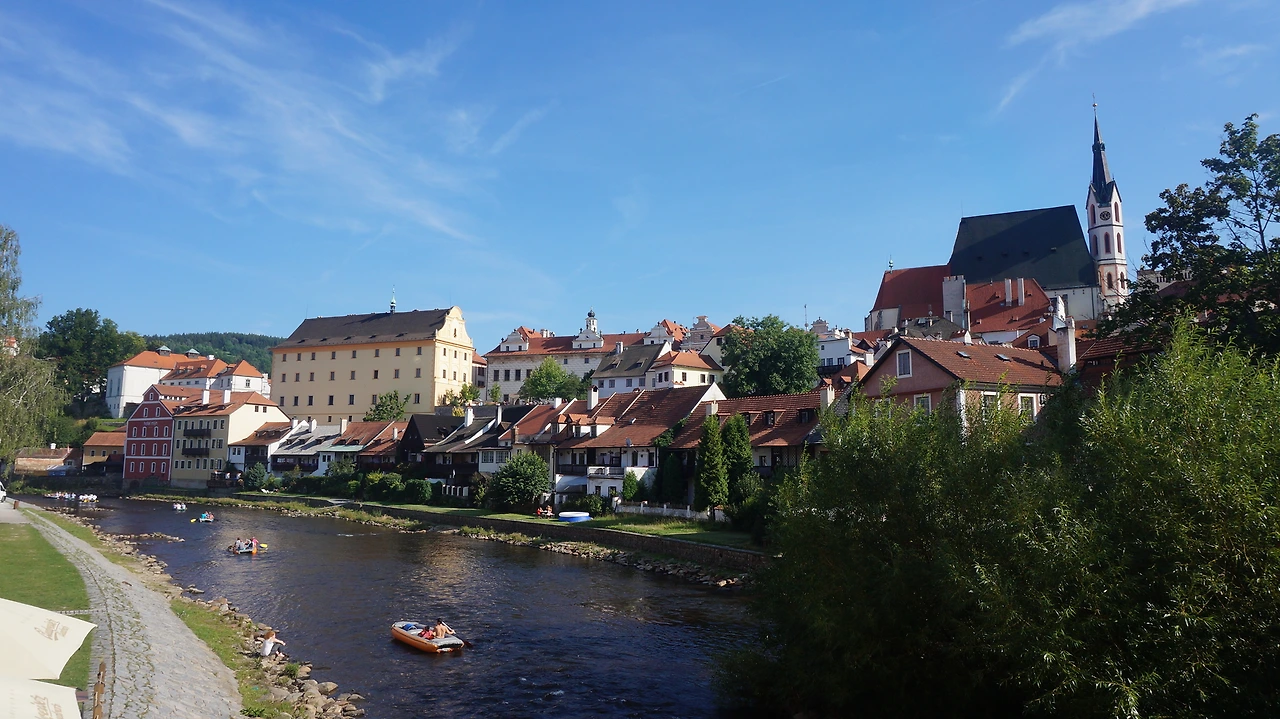 프라하도 이제 안녕. 체코의 또 다른 마을 체스키 크룸로프로 향했습니다. 달뜬 마음을 대변하듯 이어폰 속 음악은 노리플라이 3집으로. 체스키에 도착하고 울퉁불퉁한 바닥 위로 캐리어를 끌어가며 언덕길을 헤쳐갔더니 드디어 모습을 드러내는 아기자기한 이 동화 같은 마을은 단번에 저를 사로잡아 버렸습니다. 프라하에서 만났던 동행 두 친구가 체스키 크룸로프에 갈 바에는 프라하에 하루 더 있는 게 낫다고 했는데, 당최 이해가 가지 않는 말입니다. 이렇게 예쁜 곳이 있다니! 그 날은 와인 한 잔 하지도 않았는데 잔뜩 설레는 마음을 주체하지를 못했습니다. 우선 숙소를 찾아 짐을 맡기고 바로 밖으로 나왔습니다. 다리 근처 개울가에서는 마치 우리나라 가평에서 자주 볼 수 있는 통통배라든지 물놀이 공이라든지 그런 휴가철 분위기를 느낄 수 있었습니다. 날도 더워 당장이라도 뛰어들고 싶었지만 혼자서는 역부족이었지요.