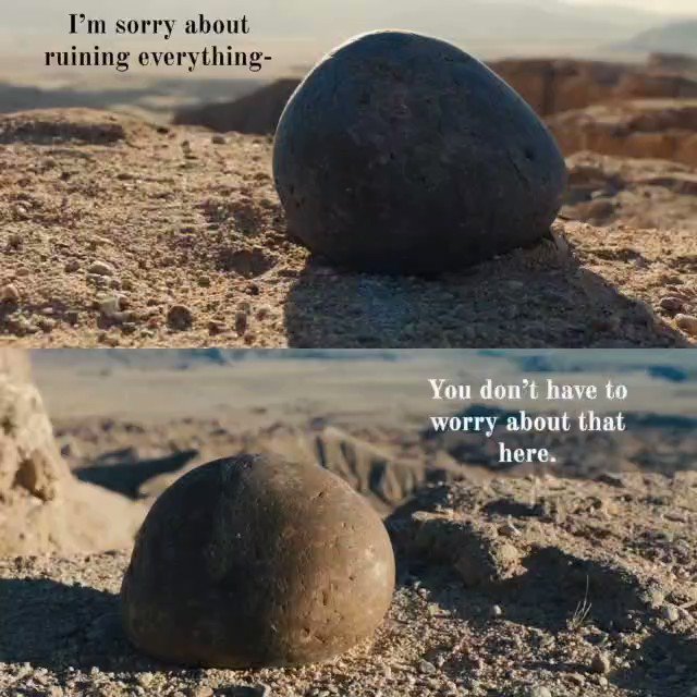 돌이 된 조부 투바키와 에블린은 서로 고요 속에서 대화한다. 돌은 움직일 수 없지만, 돌이 되어서도 에블린은 스스로를 움직여 조이에게 다가갔고 이내 절벽 아래로 굴러 떨어져버리는 조이를 향해 망설임 없이 절벽으로 몸을 던졌다. 말하지 않아도, 움직일 수 없어도 에블린은 초월적인 방식으로 조이에게 다가갔다.