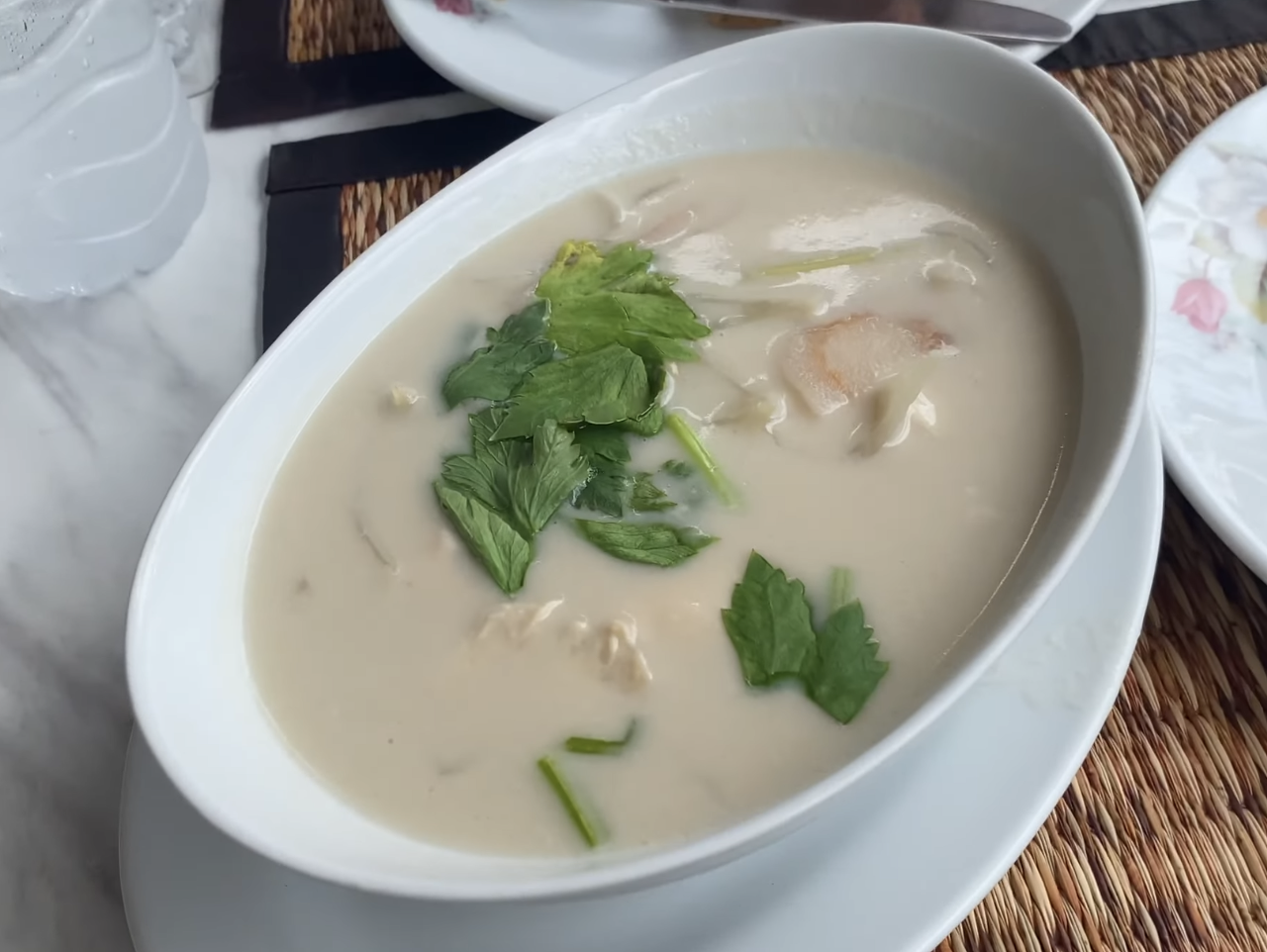 우리는 물 2병과, 타이 스타일 야채 팬브런치, 그리고 톰카를 주문했다. 사실 주문하면서 톰카가 무엇인지 잘 몰랐다.