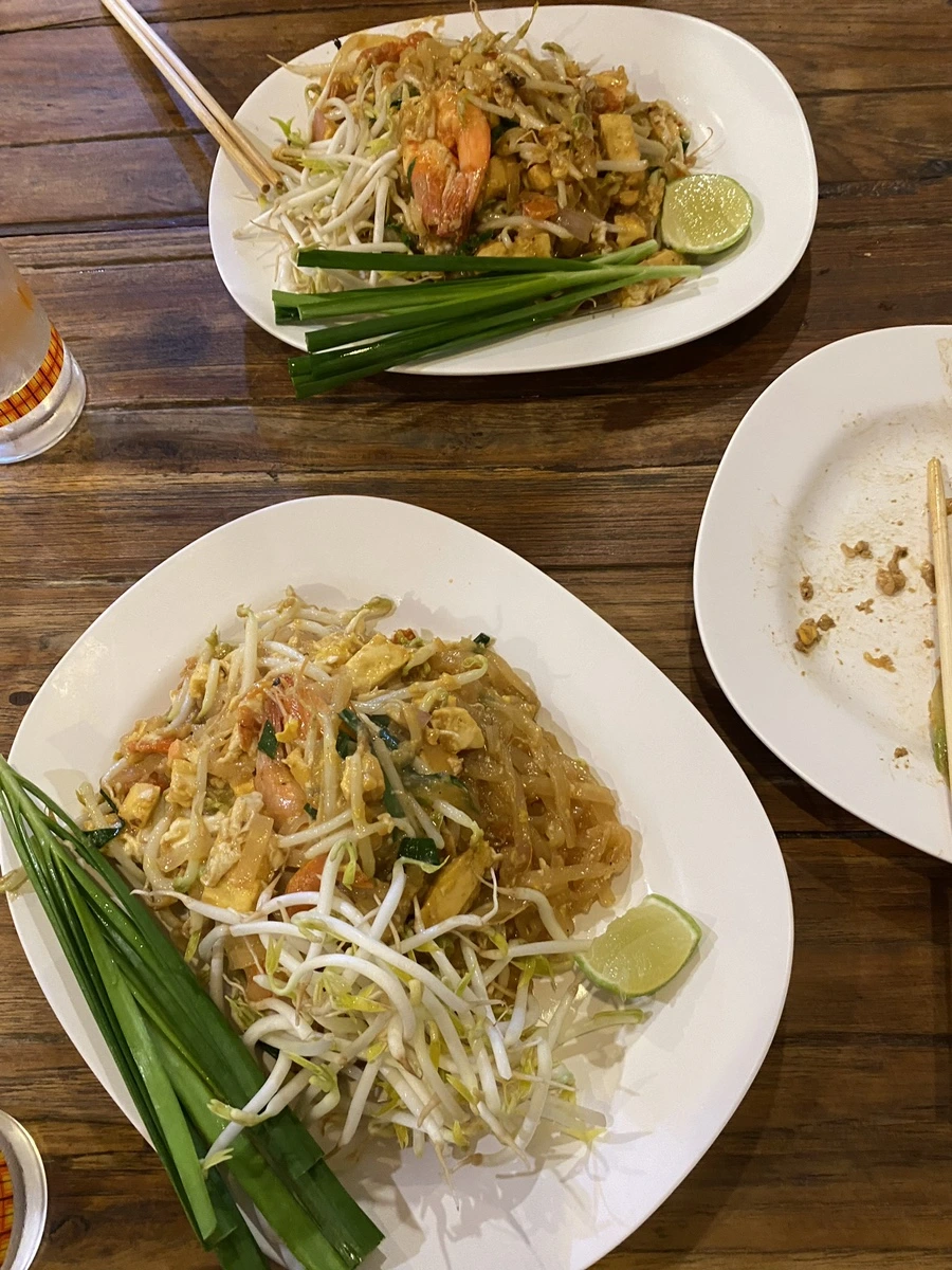 팟타이 두 접시와 돼지고기가 들은 넓적한 볶음면, 총 세 개를 시켰다. 우린 배가 고팠고 패기로웠다.