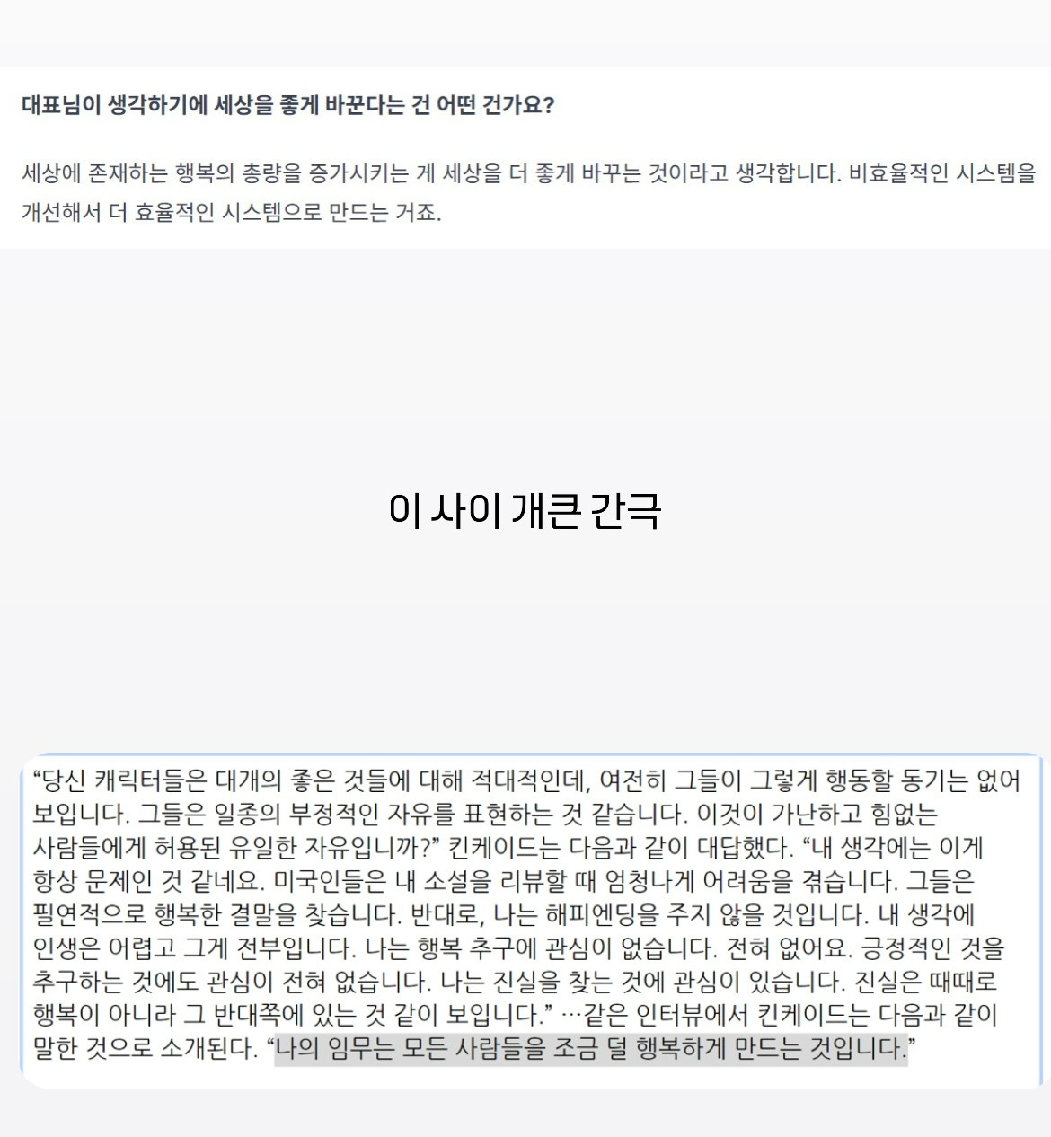 다들 막 뭐가 있다고 그래. 그래서 그게 뭐냐고 물어보면 또 막 그럴듯하고 원론적인 이야기를 해.