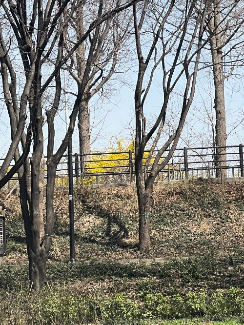 출근길에 보는데 멀리서 개나리가 피어 있었다. 점심시간마다 산책하는 길에 말이다. 멀리서 봐도 귀엽길래 사진을 한 장 찍었다. 나는 봄에 걷는 것을 제일 좋아한다. 가을에 걷는 것도 좋지만 그때는 조금 더 많이 울적해져서 봄에 걷는 것이 제일 좋다.