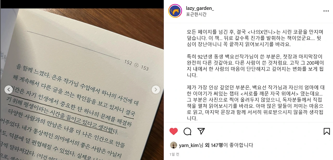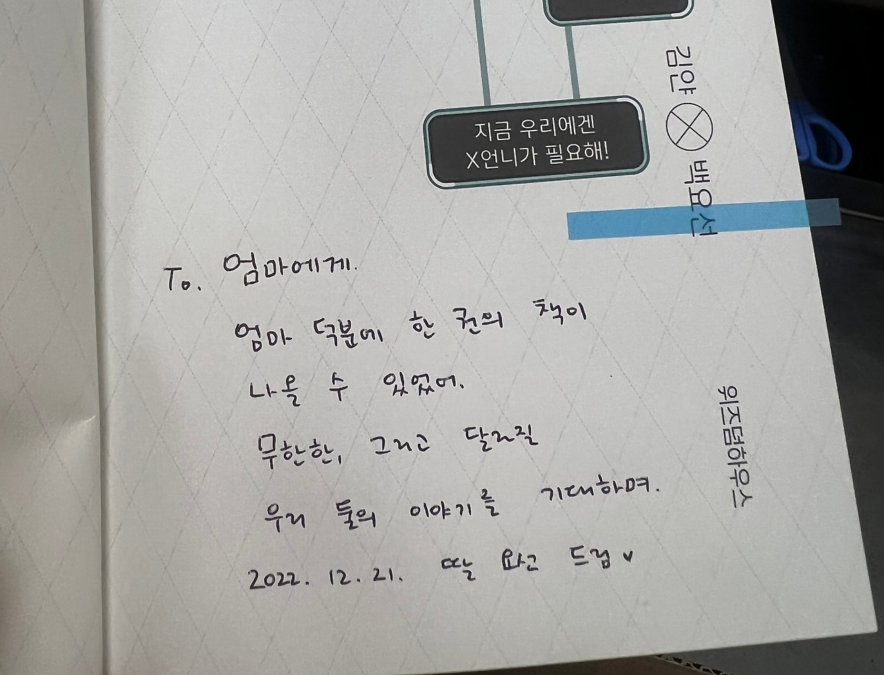 그리고 드디어 책이 나왔다. 나만의 특수한 이야기라고 생각했는데 많은 분들이 본인 이야기인 줄 알았다고 해주었다. 신기했다. 우리의 삶이 저마다 개별적이지만 보편적이기도 하다는 걸 다시 한번 깨달았다.
