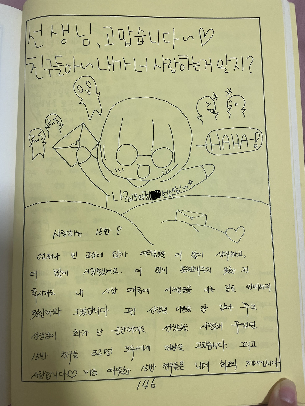 우리는 우리들을 사랑하는 선생님을 사랑했기에 15반을 선생님과 함께 간직하게 될 거라는 사실에 즐겁게 책의 이야기를 채워나갔다.