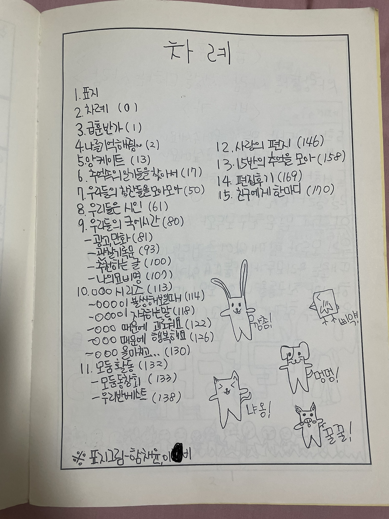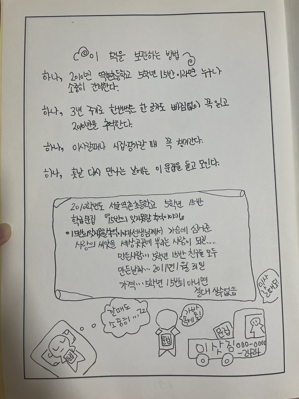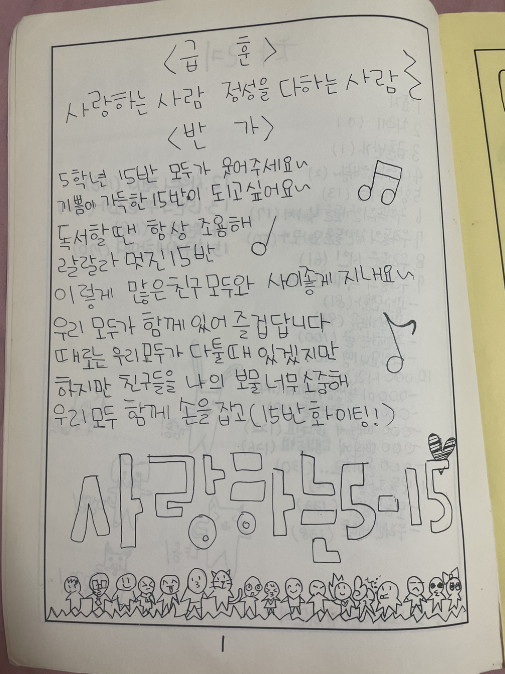 5학년 15반의 이야기가 끝나갈 무렵 우리는 행복했던 15반의 추억을 책으로 남기기 시작했다. 선생님은 매년 이 책을 만들어 선생님이 맡았던 반 아이들과의 추억을 간직한다고 하셨다.