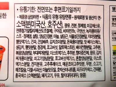처음 놀란 것은 '재료'의 가짓수였다. 50가지가 넘는 재료가 라면 한 봉지에 들어있다. 고작 면과 수프만 들은 이 봉지에 얼마나 많은 것들이 들어있는지 한 숨에 다 읽을 수도 없었다. 면을 만드는데만 열 가지가 넘는 성분이 필요하다니 겨우 두 줄을 읽고 수프 재료를 읽기 시작했다.