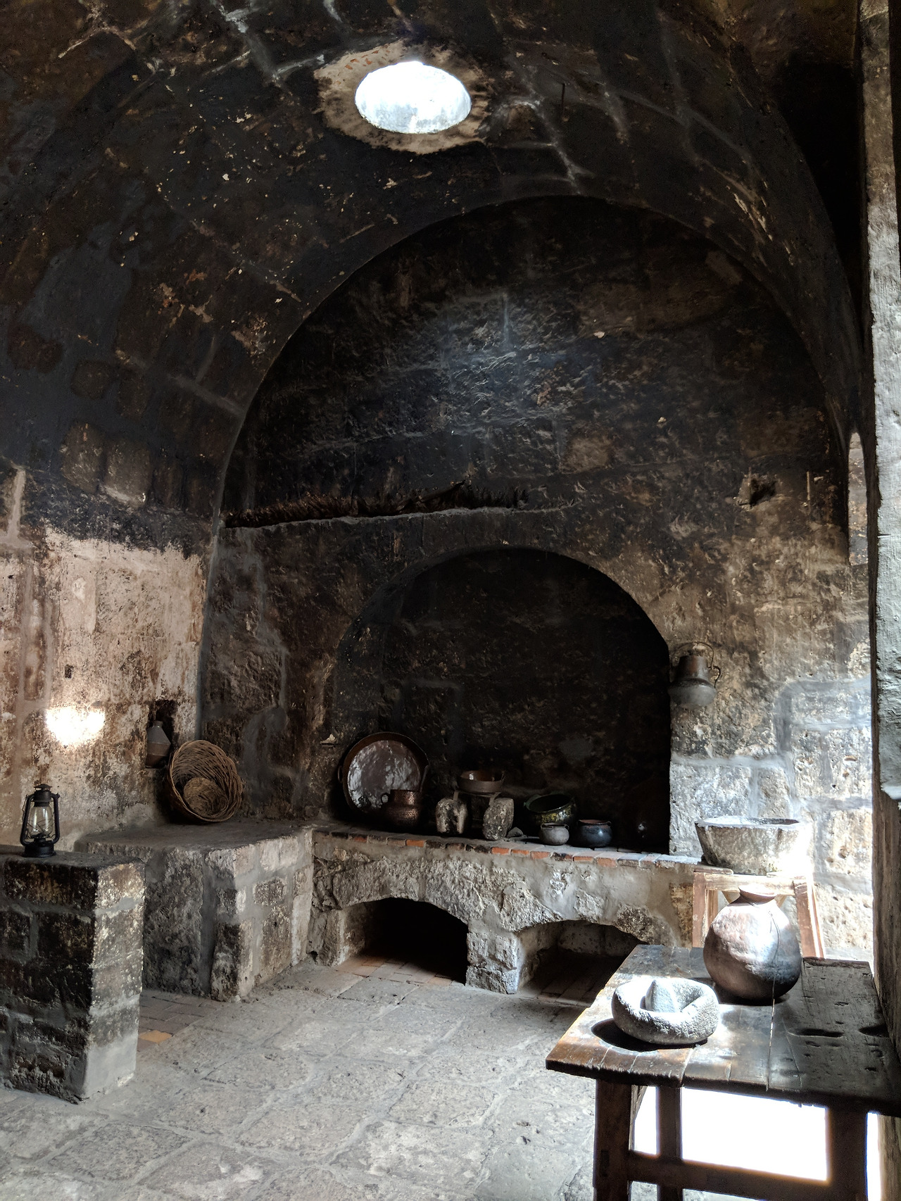 머리 위를 찌를 듯 쏘아대던 열기도 이 주방 안에선 잔잔한 온기에 불과하다. 거친 돌들로 쌓은, 거뭇하게 탄 아궁이가 예쁘다고 하기엔 너무나 못났다. 하지만 말로 표현할 수 없이 단순하고 고요한 이 공간에 나는 완전히 사로잡혔다. 내 고른 숨소리만 울리는 이 주방 안에서 매일 불을 지폈을 수녀들의 모습을 그려본다. 물을 끓이고, 채소를 다듬고, 말라 딱딱해진 빵을 수프에 뜯어 넣으며 점심을 준비했을 모습이 눈 앞에 생생하다. 그녀들의 손은 아궁이처럼 검은 때가 묻었고, 썰고 있는 채소의 일부분은 벌레 먹었다.