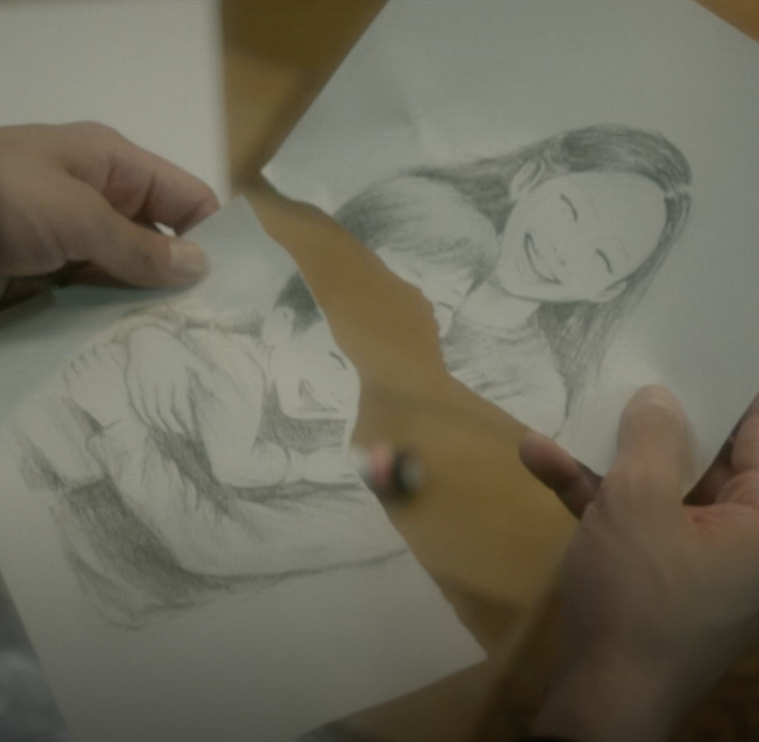 찬이가 아버지 연구실에 가요. 거기서 보게 됩니다. 찢어버렸던 그림을 풀로 붙여서 보관하고 있었다는 걸. 찬이와 엄마 그림을 책상 위에 놓고 매일 봤다는 걸 알게되죠. 조교한테 듣게 되죠. 아버지가 얼마나 찬이를 그리워했는지요. 찬의 실험실 사고 때 중요한 연구 발표까지 포기하면서 찬이를 간호했다는 것도요.