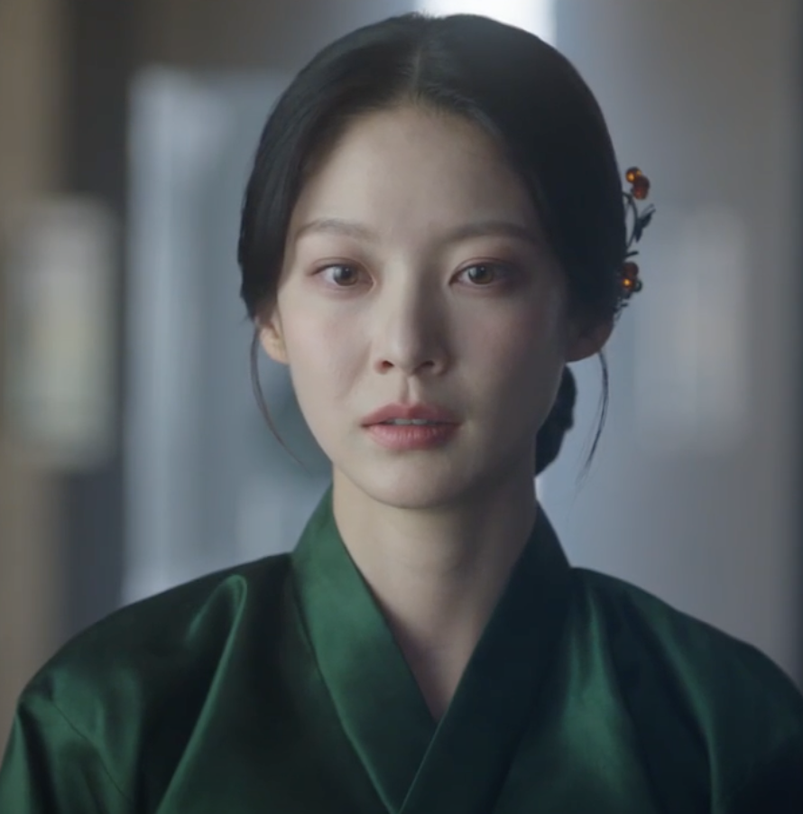 이 빨간색과 완벽하게 대비되는 인물이 있습니다. 김재경이라는 여자인데요. 앞으로 어떤 역할을 맞게 될지 모르지만, 대비 윤이랑이 이안대군의 부인 후보로 밀었던 사람입니다. 이 여자가 등장할 때 옷색깔이 유독 눈에 띕니다. 온통 하얀색이거든요. 흰색은 순종의 색이에요. 왕실의 법도에 완전히 맞춰진 사람, 체제가 원하는 대로 움직이는 사람. 대비 입장에서 이안대군을 통제하려면 그의 내면에 있는 불을 꺼야 하잖아요. 김재경의 흰색은 바로 그 역할을 위한 겁니다. 이안의 불꽃을 잠재우고, 왕실의 질서 안에 가둬두기 위한 선택이죠. 물론, 그게 정말 결혼을 시키려는 의도라기보다는 이안을 흔들려는 속셈이겠지만요. 반면에 희주의 빨간색은 이안의 불을 끄는 게 아니라 함께 타오른다는걸 암시하죠.대비에게 희주가 가장 위험한 존재일 수밖에 없는 이유가 바로 여기에 있어요.