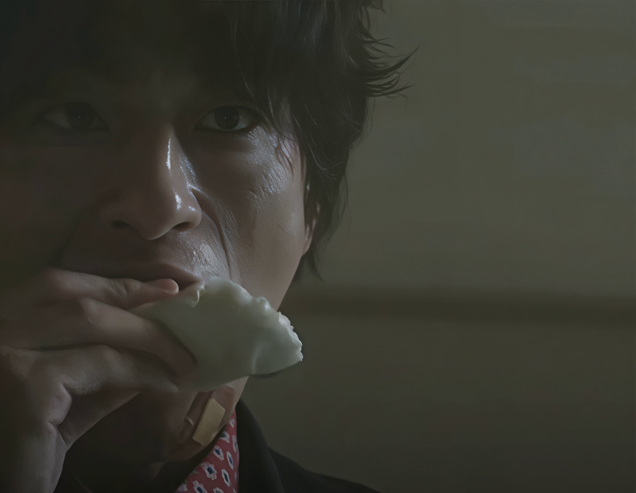 그런데 평소 혼자 있을 때 황동만은 안 그래요. 방에서 저렇게 먹는 장면은 나오지 않습니다. 저녁에 형 집으로 돌아갈 때도 김밥 한 줄 사서 조용히 들어가죠. 그러니까 황동만은 원래 식탐이 많은 사람이 아닌 거예요. 혼자든 누가 있든 늘 음식에 집착하는 캐릭터가 아니라는 겁니다. 그러면 왜 사람들 앞에서, 특히 8인회 앞에서 그렇게 미친 듯이 먹어대는 걸까요? 최동현에게 모욕을 당하고 나서는 왜 더 미친 사람처럼 음식을 밀어 넣은 걸까요?