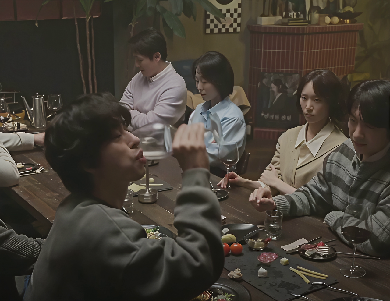 8인회 자리에서 음식을 게걸스럽게 먹는 황동만은 맛을 보고 있는 게 아니에요. 배를 채우고 있는 것도 아니에요. 그 자리에 자기가 있다는 걸 자기 몸에 절박하게 새기고 있는 거예요. 급하고 빠르게 많이 먹어대는 건, 비어 있는 감각을 빨리 덮으려는 거예요.
