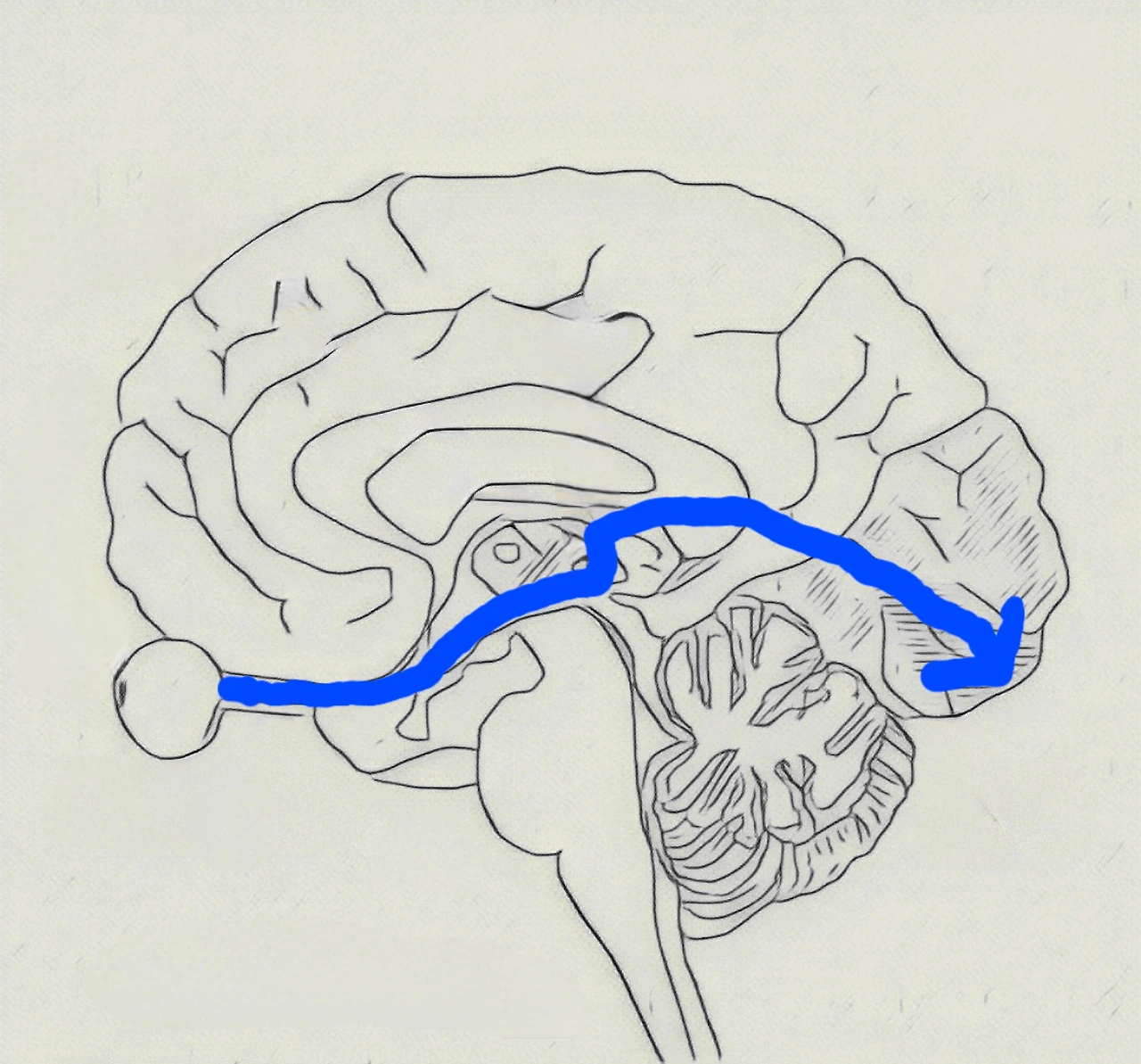 뇌를 산(山)이라고 보면 dorsal pathway는 정상으로 가는 능선을 타는 등산로이다. 라고 보니 두정(頭頂)이란 말이 머리 꼭대기란 뜻이다. 반면에 둘레길에 해당하는 것이 ventral pathway이다. 산 정상으로 가면 주변의 풍경이나 ‘위치’ 정보를 쉽게 알 수 있다. 둘레길을 걸으면 산의 내밀한 모습과 ‘정체’를 알 수 있다. 그렇게 생각해 보자. 뇌의 시각 인지도 비슷하다.