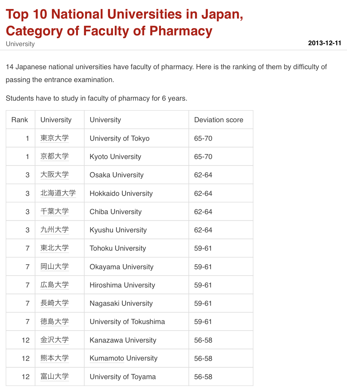 3. 일본의 TOP3 공대 (동경대 교토대 동경공대)는 동대학 약대를 비롯해 35개 국립 의과대학들 보다 입결이 높다.