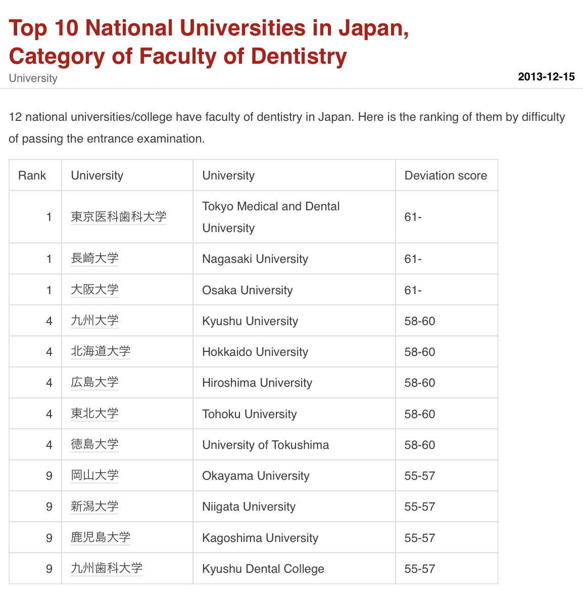 2. 일본에서 치대 입결은 꽤나 낮다 (의대입결이 다 돌고 난 후 시작하며 약대입결보다도 낮다)