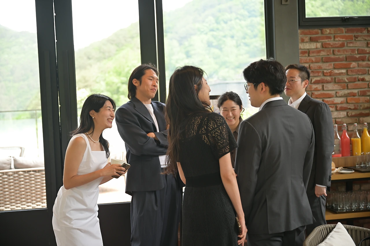 나은이가 한 줄 한 줄 적은 글귀를 따라 우린 서로를, 만나게 된 계기를, 나은과 나에 대한 퀴즈를 소개하며 사람들을 즐겁게 해 줄 수 있었습니다. 참석해 준 사람들이 우리에게 쓰는 편지도 찬찬히 들을 수 있었습니다. 그리고 우리 부부가 서로에게 전하는 진심 어린 글을 들려줄 수 있었습니다. 나은의 헌신 아래 모든 것이 자연스럽고 알맞게 굴러갔습니다.