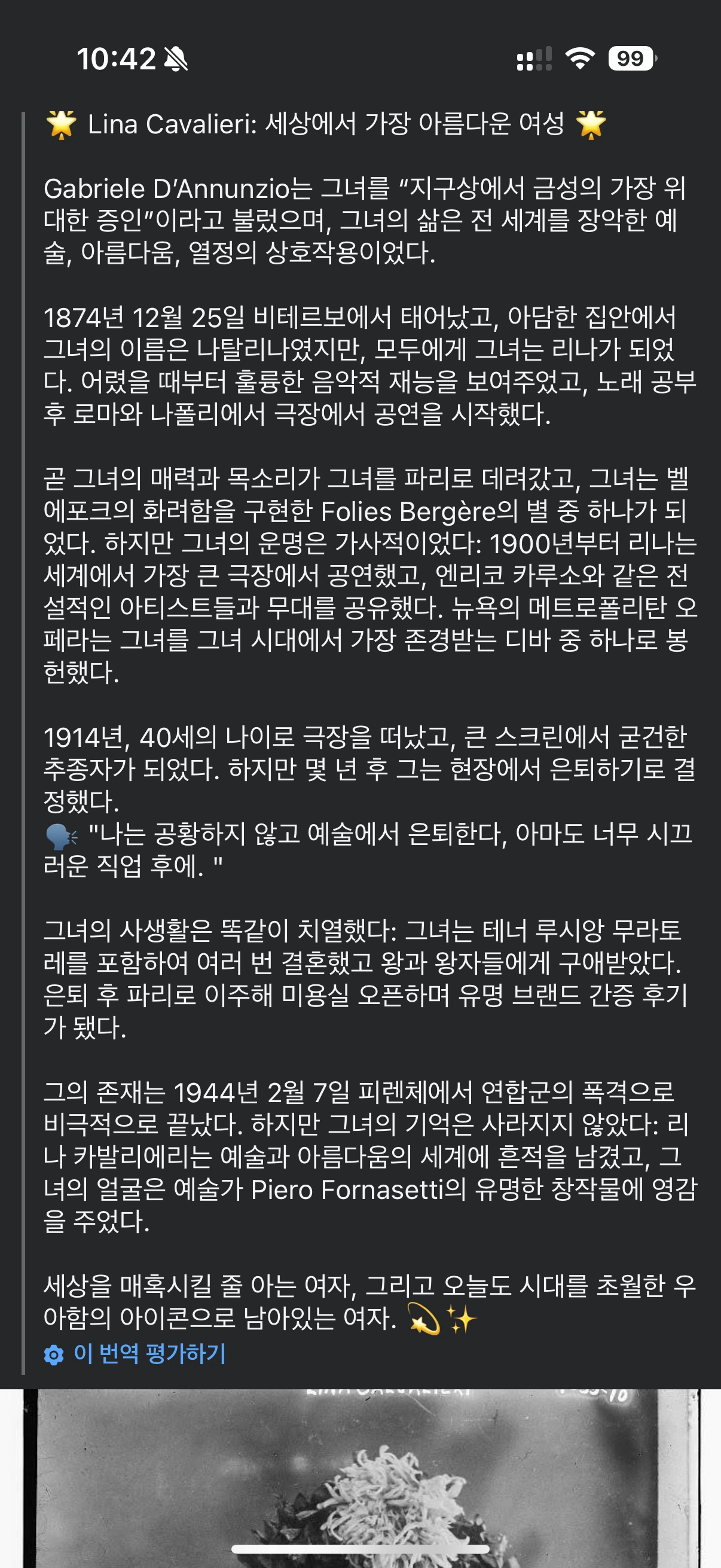아시다시피 여행 중 스마트폰 앱을 사용하다 보면 한국과는 다른 환경을 만나는데. 넷플릭스 등 OTT는 국가별 접근권한 같은 것이 있어 그 나라에서만 볼 수 있는 영상만으로 편집된다. 또한 SNS도 국가환경과 지역밀접한 피드로 재편되는데 특히나 페이스북 같은 경우는 이탈리아 사람들이 올리는 피드가 많이 보이게 된다. 난 시칠리아에서 이들(아마도 이탈리아 사람들)의 피드가 매우 특색 있었다. 아마도 오랜 역사와 근대 큰 전쟁을 겪지 않아서 그런지 사진 자료나 역사 자료가 많이 남은 듯했고 이들의 피드를 보면 하나의 사진(인물이나 역사적 사건)에 그 상황이나 인물을 설명하는 피드가 한가득이다. 해당 피드 모두가 나에게 신선했고 역사적 인물에 대한 내용들이라 매우 흥미로웠다. 마치 지식의 향연처럼 서로 경쟁하듯 과거를 이야기하듯이.