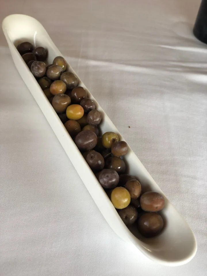 목가적 분위기의 시골 구석에 위치했던 레스토랑은 1월이라 사람은 별로 없었으나 마당부터 포스가 느껴졌다. 처음 웰컴 음료와 수제 올리브로 맞이해 주었고 이 레스토랑에서 직접 운영 제조한 자체 화이트 와인 한 병을 처음 따왔다. 샐러드와 함께 서비스된 음식에 자체 브랜드인 올리브오일과 비네가를 듬뿍 넣어 먹으니 너무 신선했다. 꼭 오일과 비네가를 사야겠다는 생각을 했다.
