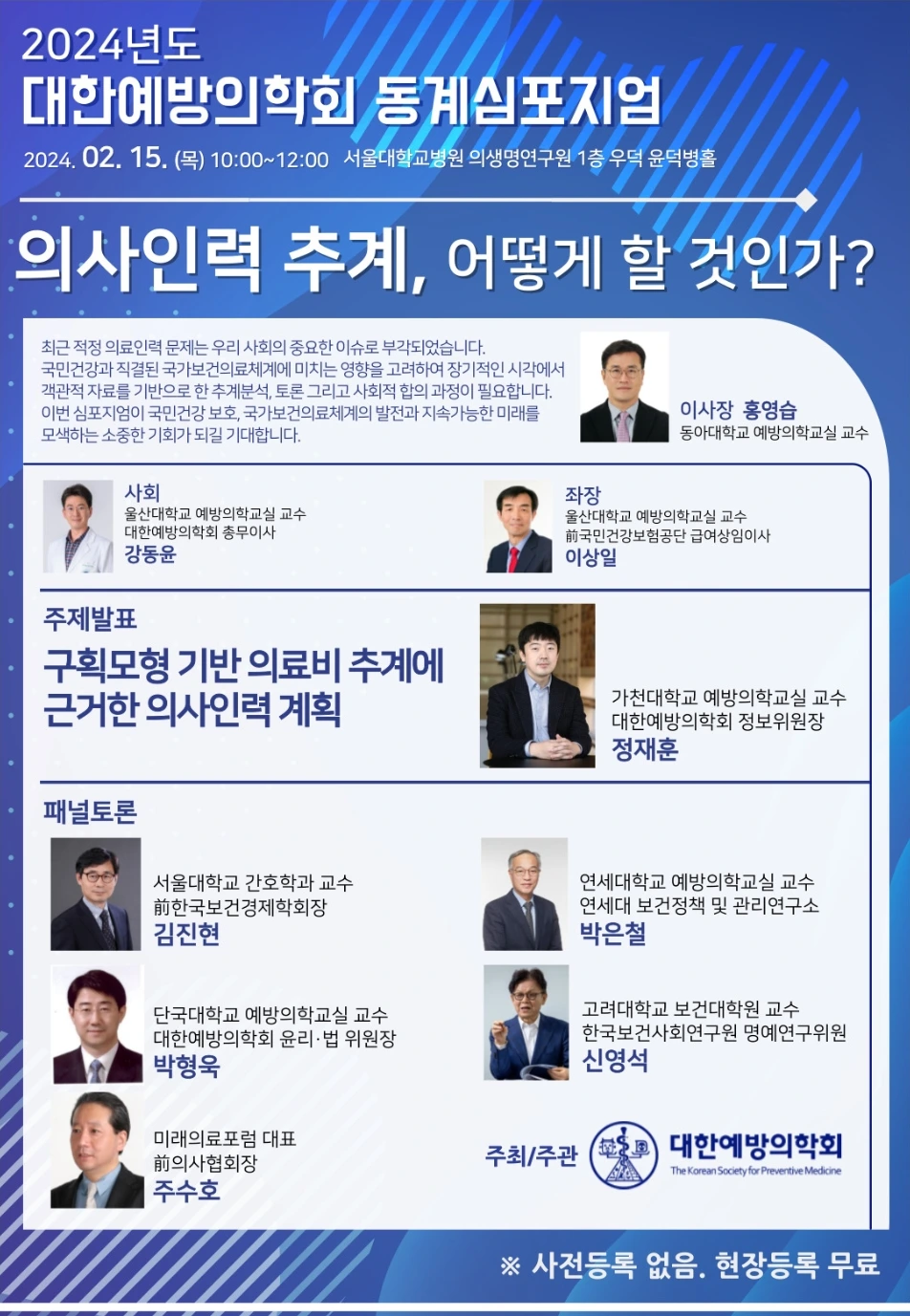 최근 대한예방의학회에서 의사인력 추계와 현재 상황에 대한 연구를 심포지엄에서 발표했다.
