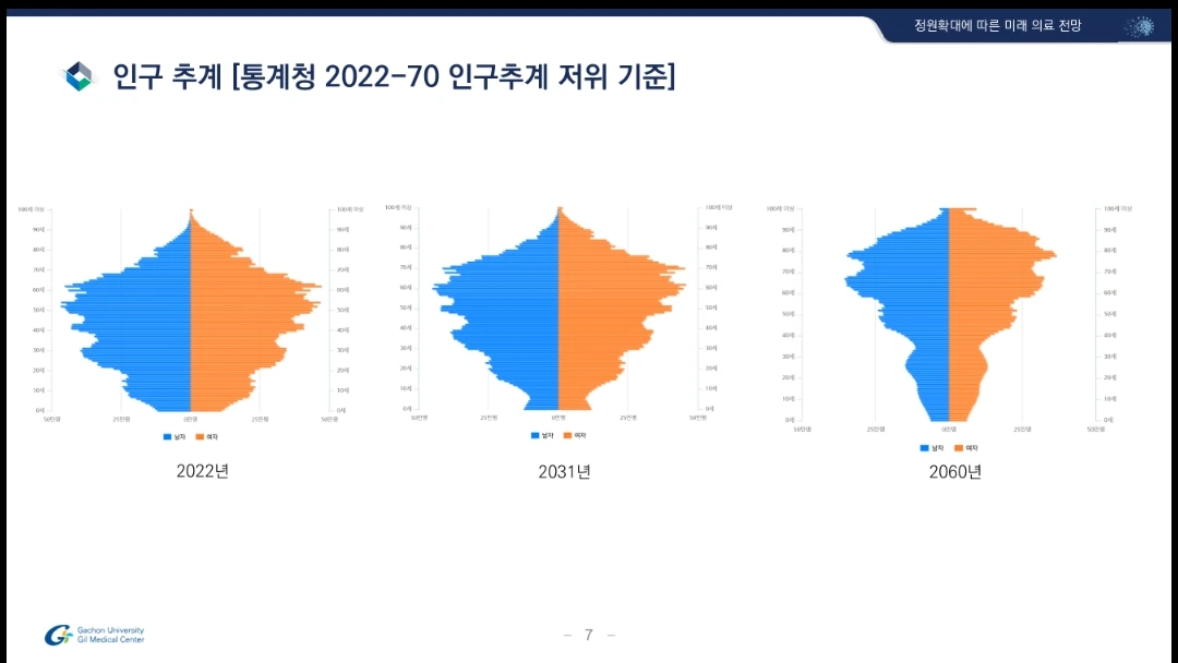(인구구조, 경제성장, 미래의료 기술발전, 수명 연장 등 많은 변수와 논란이 있을 수 있다.)