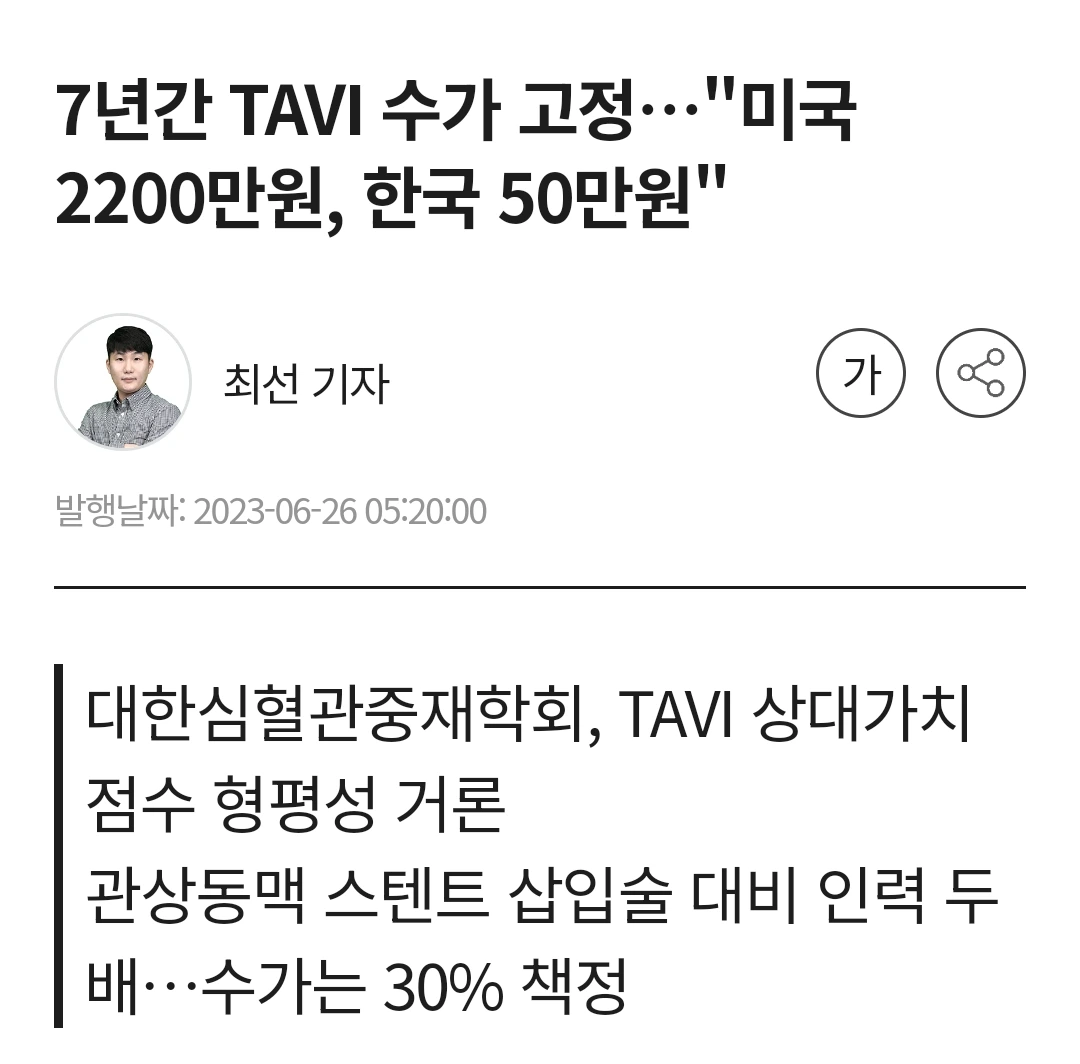 두 개 내 종양 적출술을 하면 일본에서는 수술 수가로 1581만 원을 책정한다. 반면 한국은 1/7 수준인 244만 원이다. 뇌동맥류 경부 클리핑(1개 기준)도 일본은 1140만 원인 반면 한국은 242만 원이다.