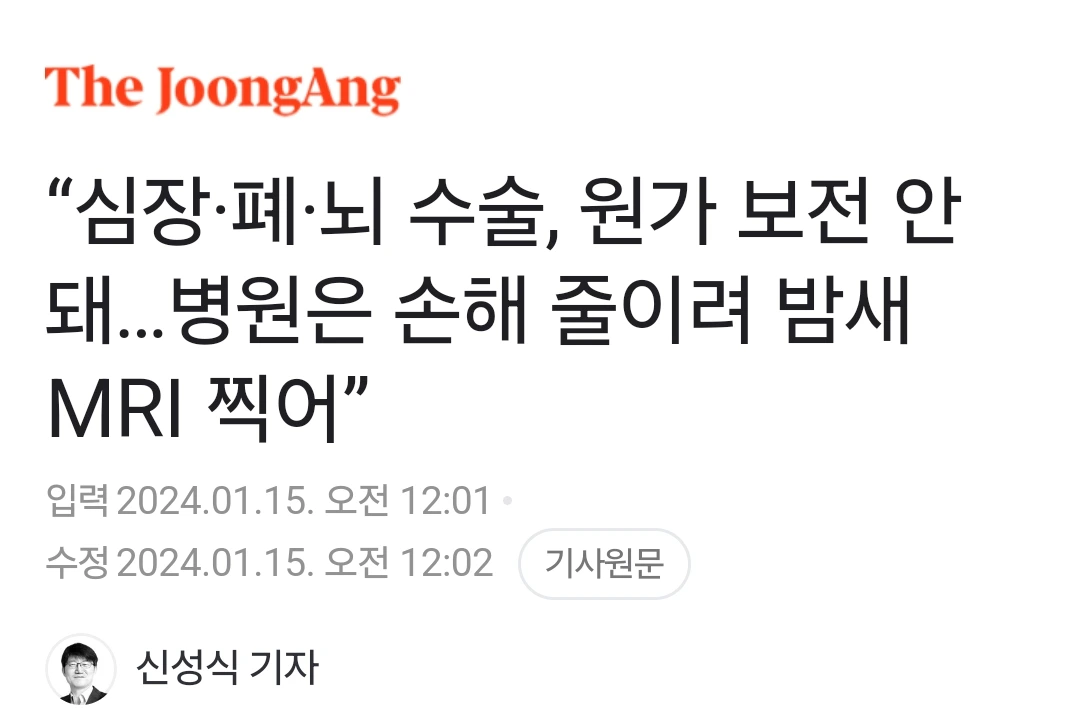 외과나 순환기내과/흉부외과도 마찬가지다. 수술 수가로만은 수술을 할 때마다 적자다. 비급여나 검사 등의 수가로 적자를 메꿀 수밖에 없다.