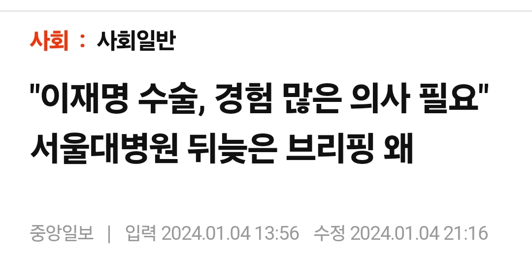우리나라 야당 대표도 부산보다 서울에서 수술받기를 원했다.