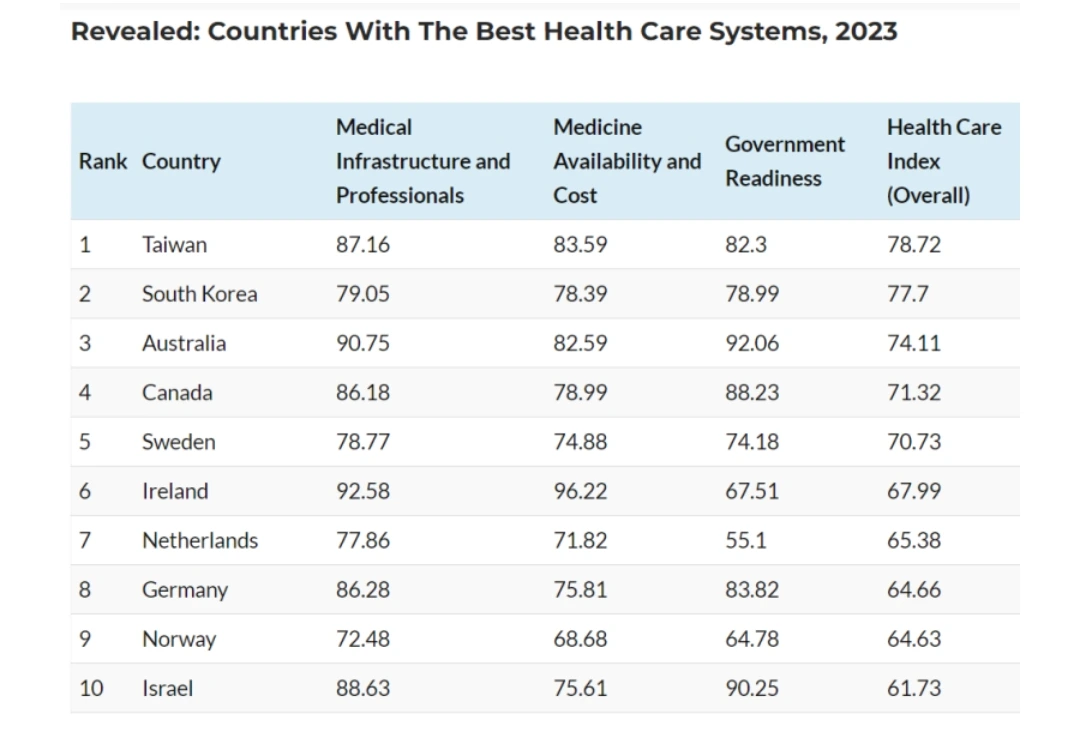 CEO World Magazine 이 발표한 2023년 전 세계 의료 순위에서 우리나라는 2위를 차지했다.
