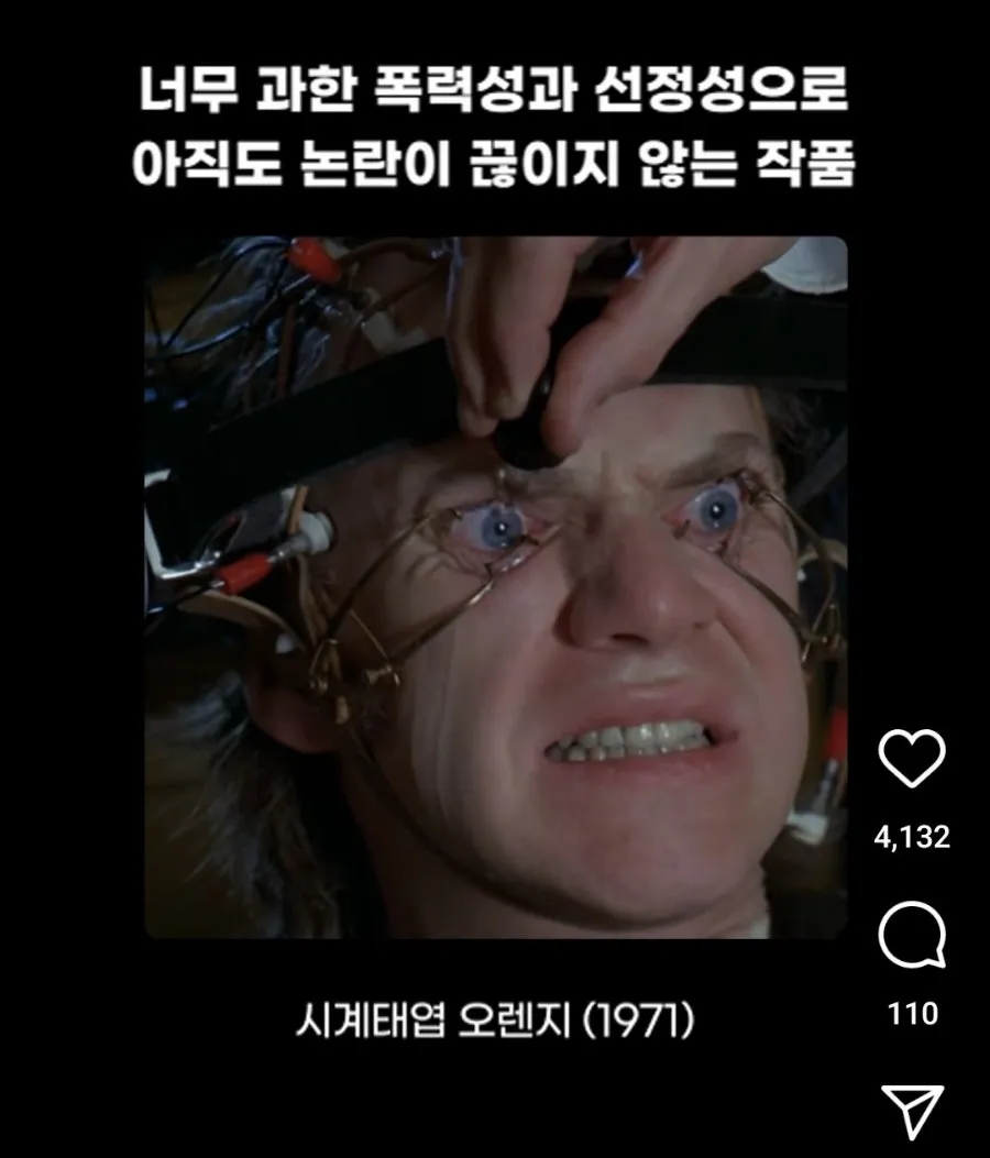 시계태엽 오렌지 -> 대놓고 오마주(눈 벌리는 장면)