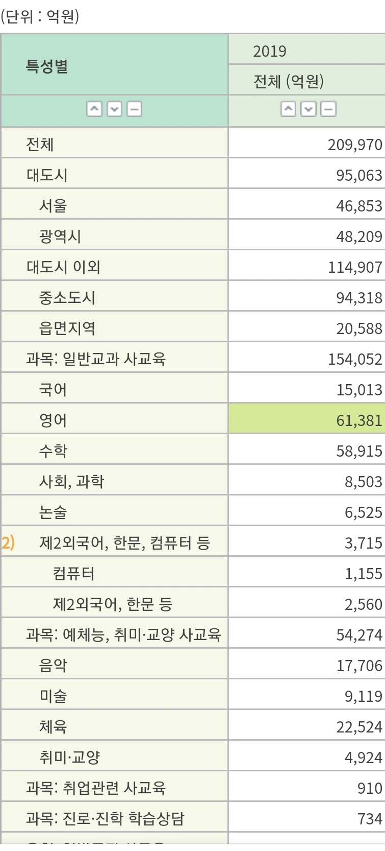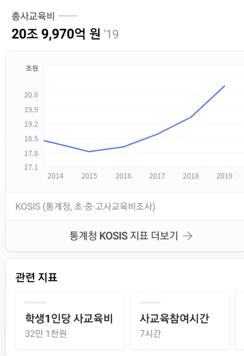 그렇다면 대입에서 절대평가의 타깃으로 영어가 지목된 이유가 대체 무엇인가? 그 이유는 다름 아닌 영어교육의 비대한 사교육 시장이다. 그렇다면 절평 전환 이후 과연 영어교육 시작의 사교육비는 줄었을까?