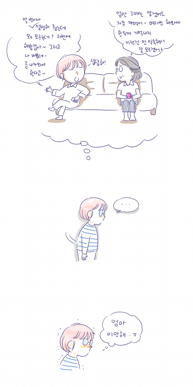 배우는 게 어렵고 어색할 울 엄마한테는